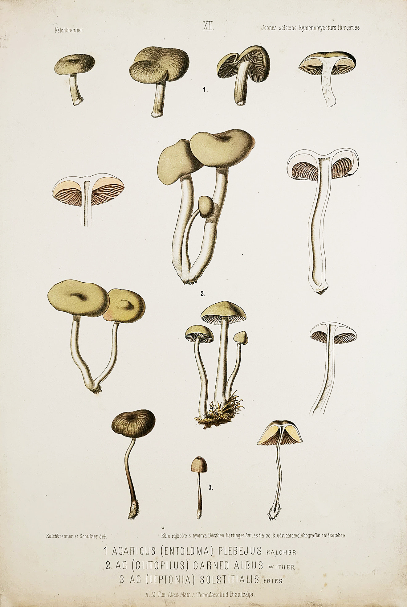 Rare c.19th mushroom lithograph. From Kalchbrenner, K. Icones selectae Hymenomycetum hungariae. Budapest 1877.