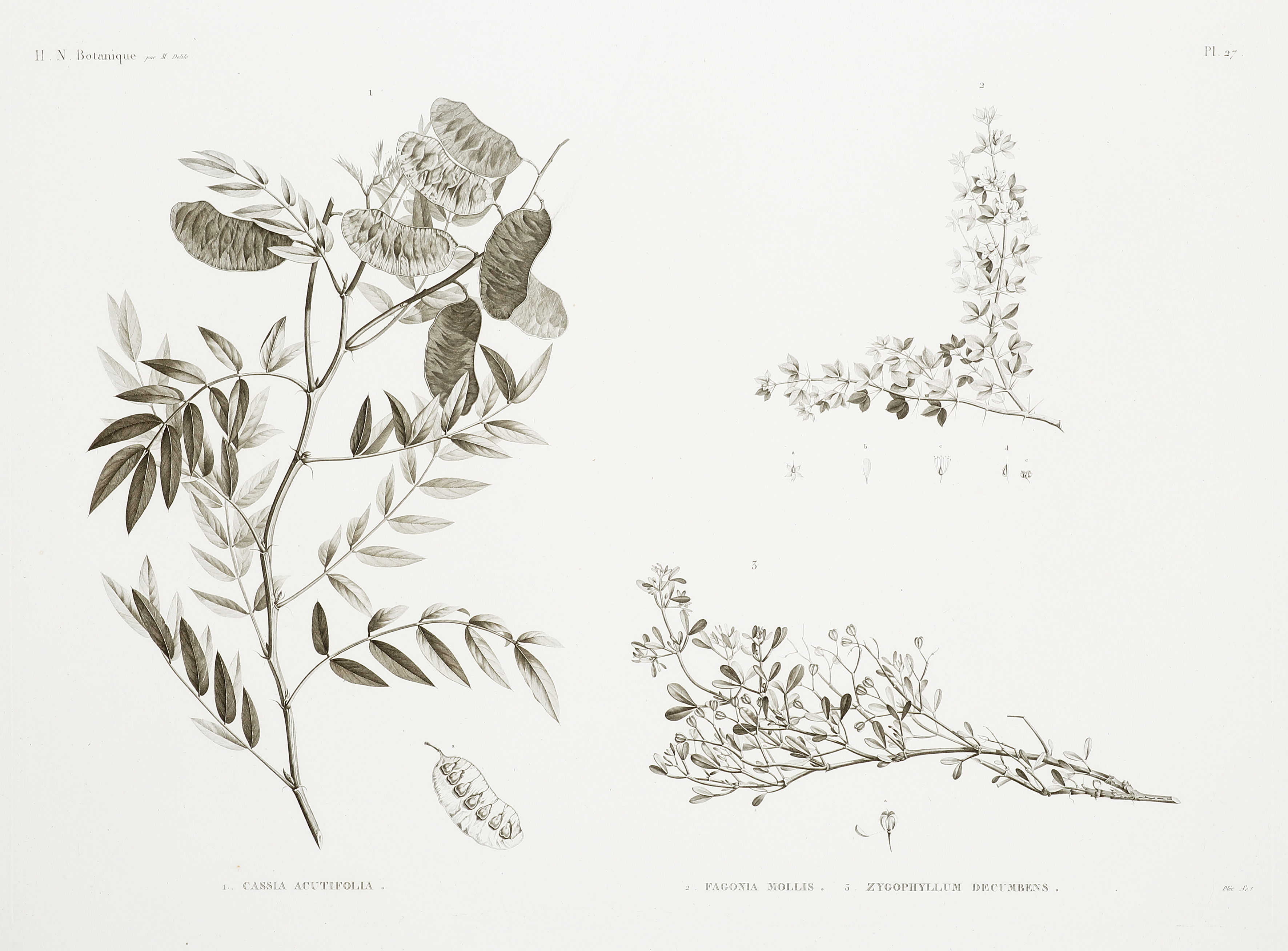 1. Cassia Acutifolia. 2. Fagonia Mollis. 3. Zygophyllum Decumbens.