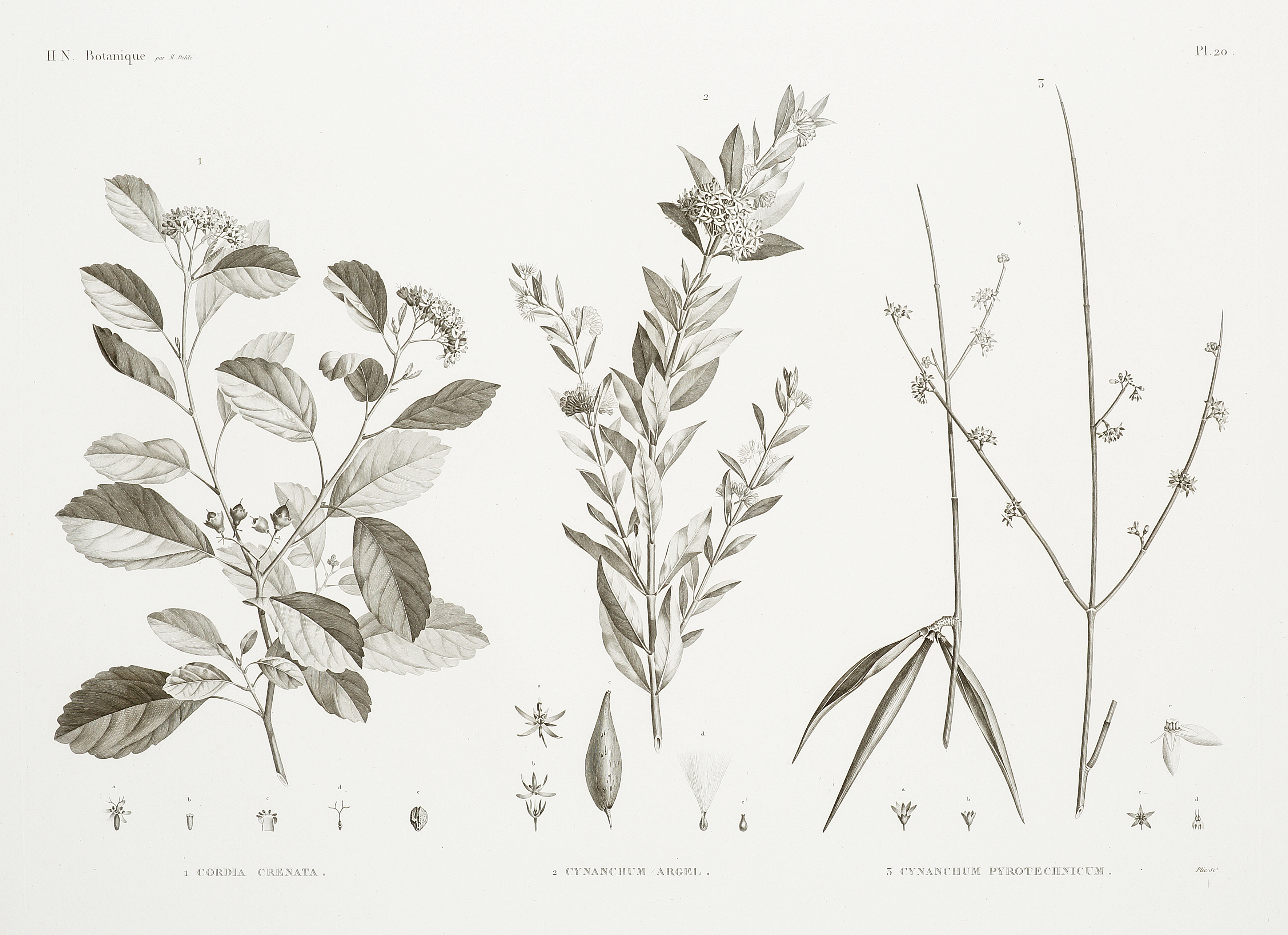 1. Cordia Crenata 2. Cynanchum Argel 3. Cynanchum Pyrotechnicum - Antique Print from 1819
