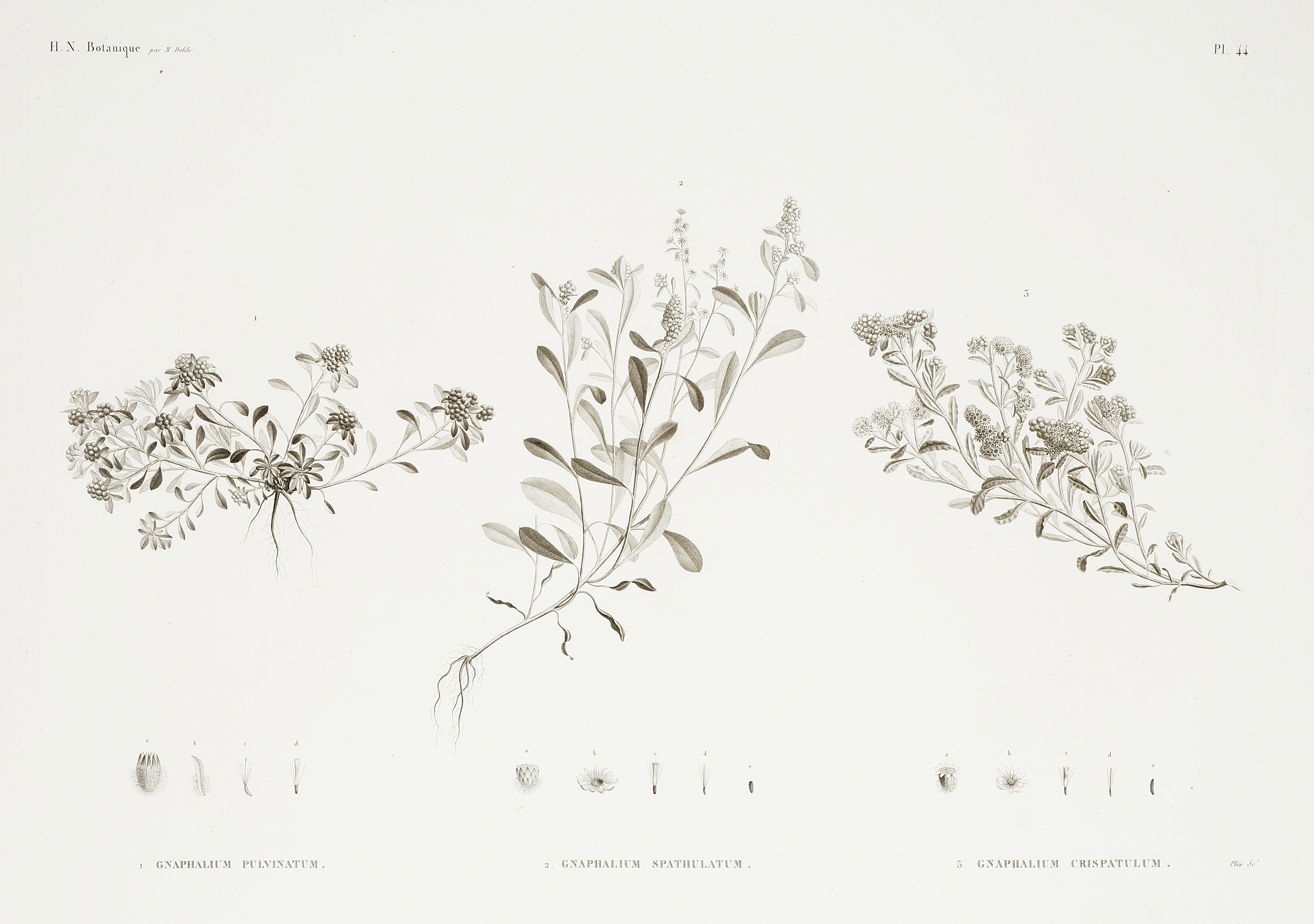 1.Gnaphalium Pulvinatum 2. Gnaphalium Spathulatum 3. Gnaphalium Crispatulum - Antique Print from 1819