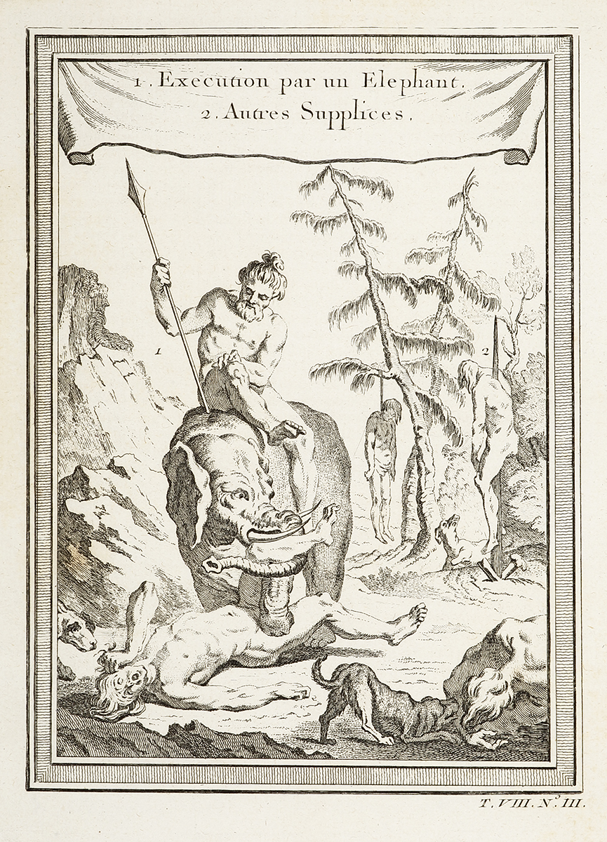 Scarce c.18th engraving showing methods of execution in Ceylon. From Prevost, Abbe. Histoire générale des voyages : ou, Nouvelle collection de toutes les relations de voyages par mer et par terre qui ont été publiées jusqu’à présent dans les différentes … Read Full Description