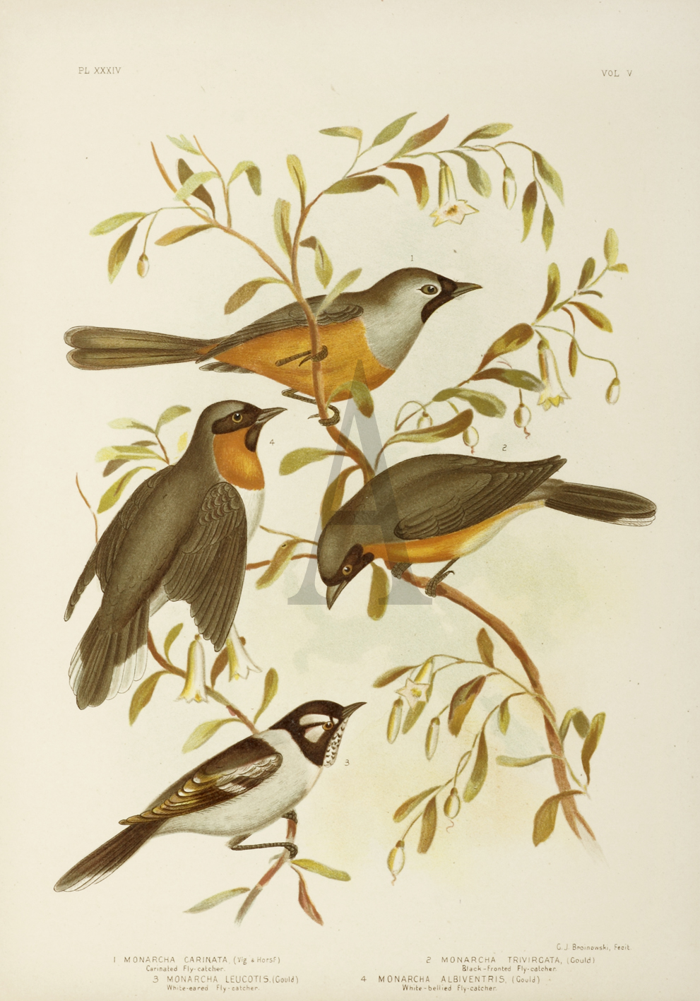 Broinowski was an artist and ornithologist, born in Poland and educated at Munich University where he studied classics, languages and art subjects. To avoid being conscripted into the Russian army, he went to Germany where a period of privation followed both on the Continent and in London, and about 1857 he joined a ship bound for Australia. Experiences at sea appear to have been very trying for him, so that he was glad to swim ashore at Portland, Victoria, and walk into the country. On that journey, according to his own record, he met with the only act of kindness he had received since leaving home: an elderly Scottish lady provided a meal and sent him on his way with 'new courage'. He worked in rural Victoria and later found employment with a firm of publishers in Melbourne; he then travelled widely in Victoria, New South Wales and Queensland, painting landscapes and scenes of various towns and promoting 'art unions' with his pictures as prizes. About 1863 at Richmond, Victoria, he married Jane Smith, daughter of the captain of a whaler. Settling in Sydney in 1880 he taught painting to private pupils and at colleges, lectured on art and exhibited at various showings of the Royal Art Society. He was then commissioned to supply the Department of Public Instruction in New South Wales with pictures of Australian birds and mammals. In 1887 Broinowski issued his famous series The Birds of Australia.