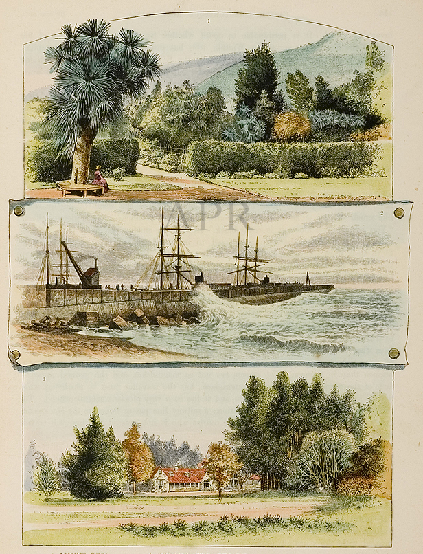 Colonial engraving of Timaru, Canterbury region of New Zealand.