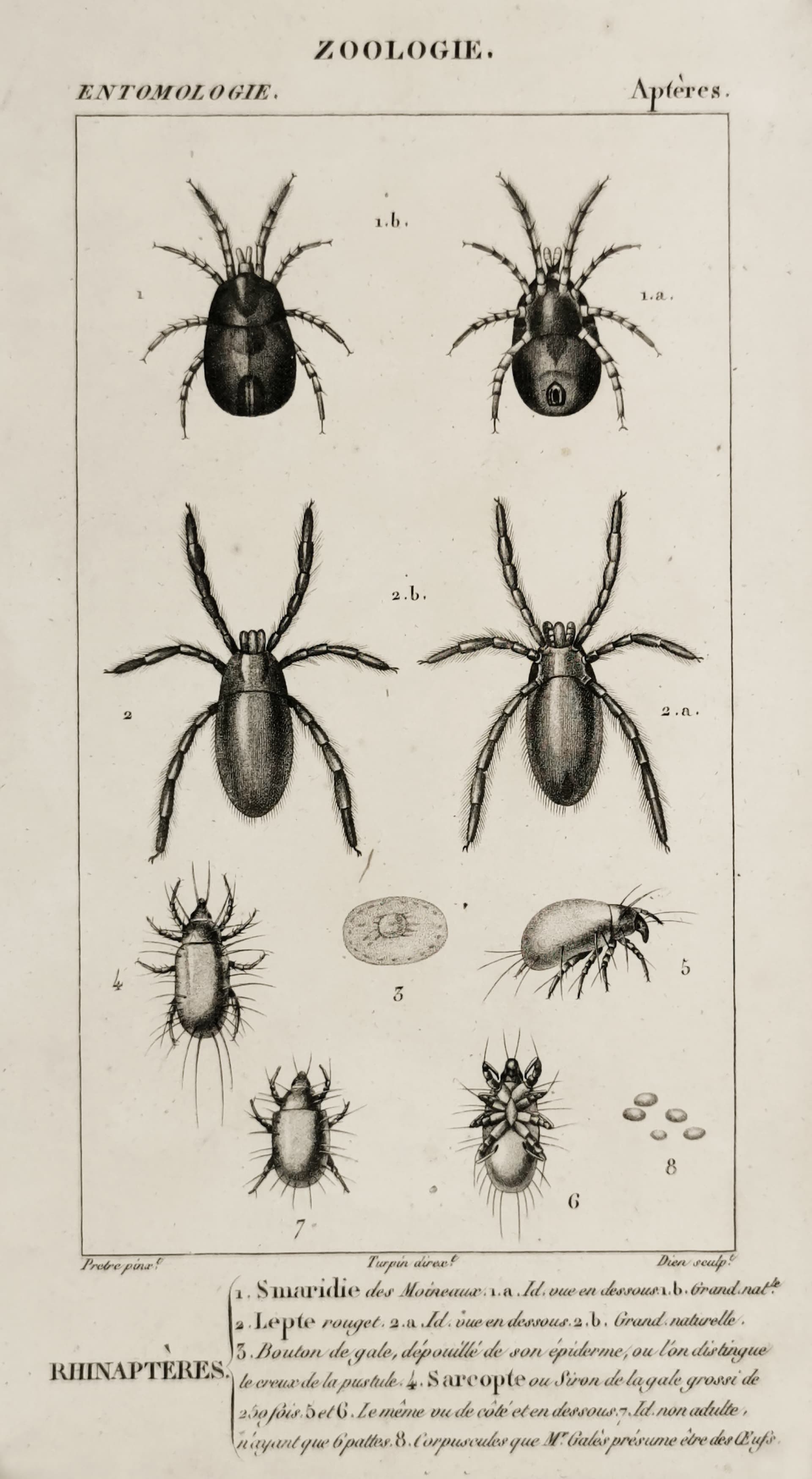 Print of Apterous insects, which are those without wings. From the book Dictionnaire des Sciences Naturelles by Anselm-Gäetan Desmarest (1784 – 1838)