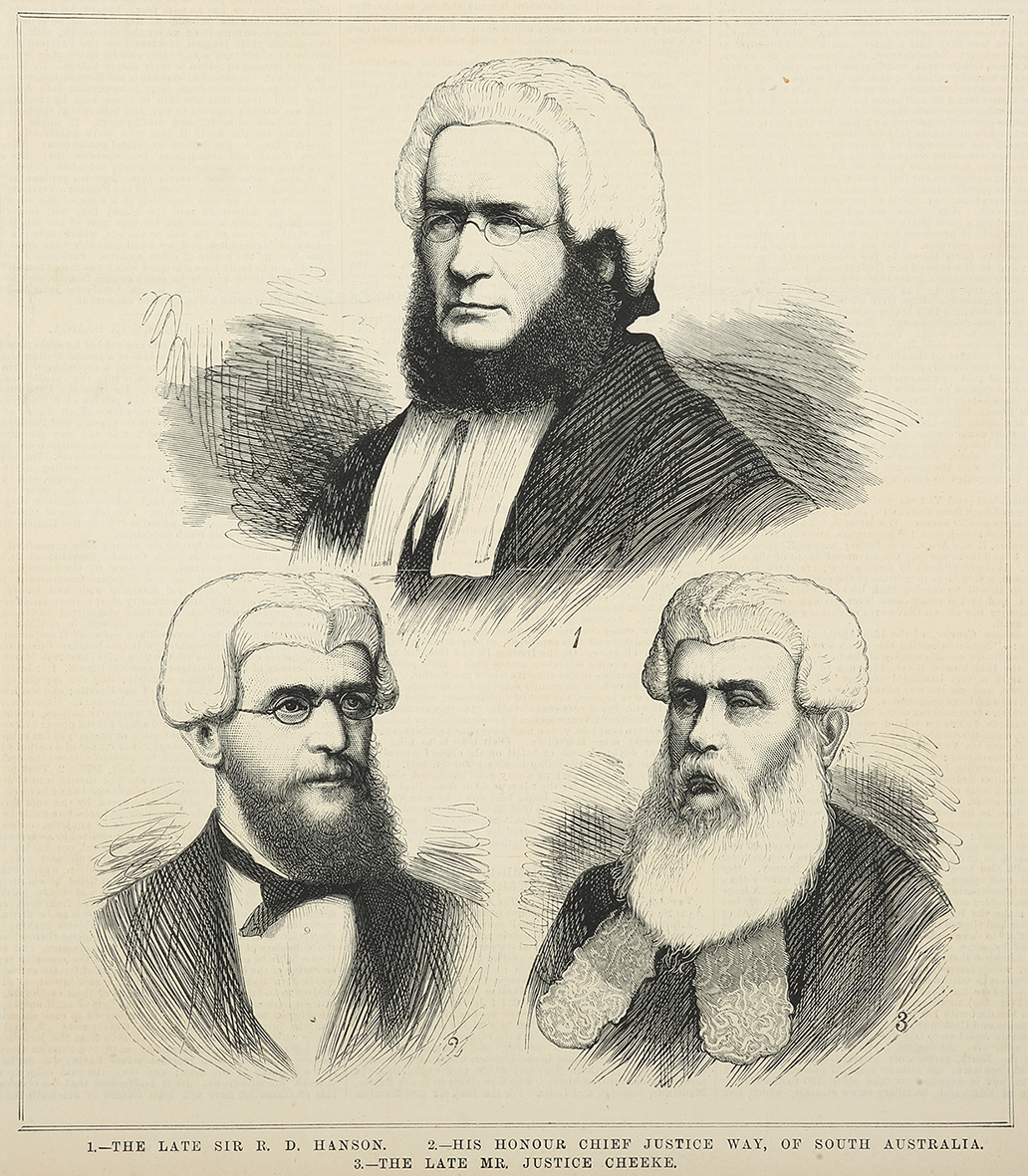 1.-The Late Sir. D. Hanson. 2. His Honour Chief Justice Way, of South Australia. 3. The late Mr. Justice Cheeke. - Antique Print from 1876