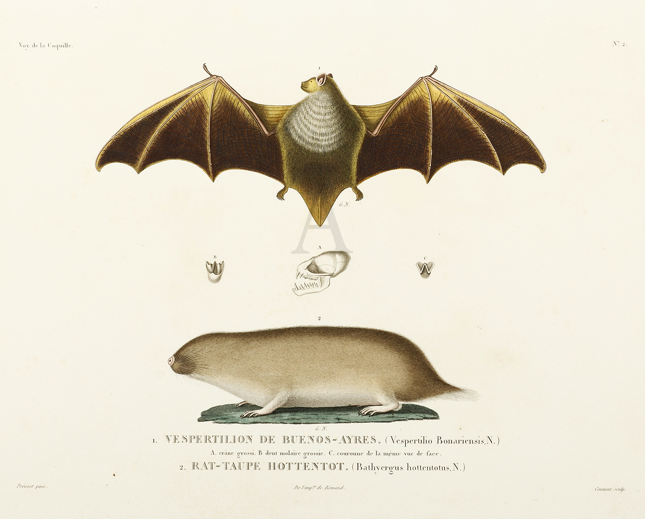 From "Voyage Autour Du Monde" being the voyage of the Coquille commanded by louis Duperrey in 1822-5. The Ship visted many Pacific Islands including New Guinea, Tonga, Society Islands, NZ, Tahiti and Australia. They collected thousands of specimens, many that … Read Full Description