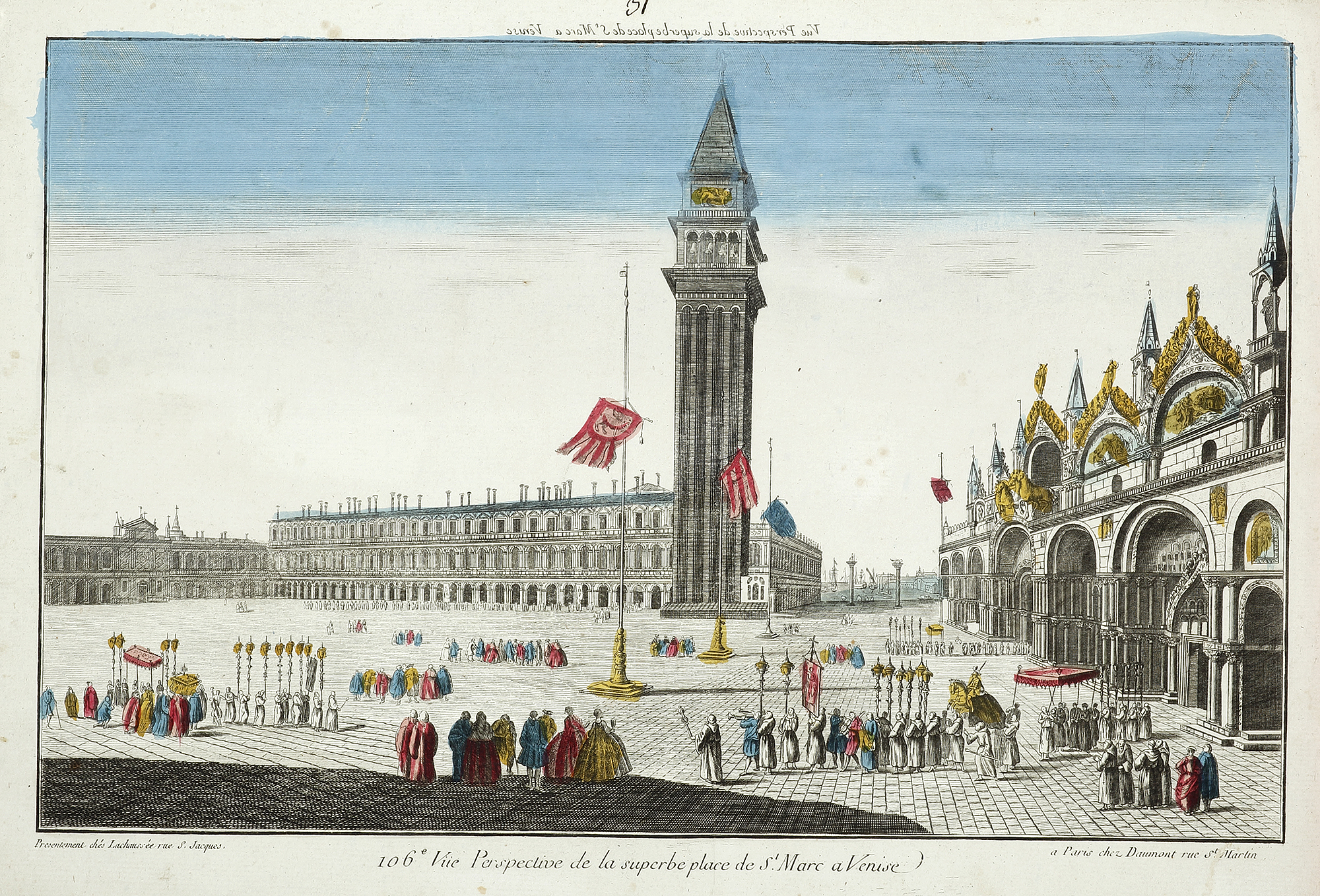 Fine c.18th vue Optic of Piazza San Marco, Venice, with the western facade of St Mark’s Basilica on the right of the image and the clock tower at centre.