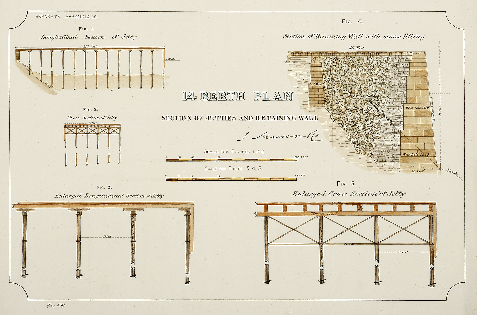 Very rare early civil engineering diagram for proposed Circular Quay walls and jetties.