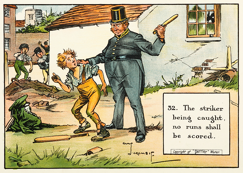 This humorous engraving is from the Rules of Cricket produced by Perrier Water. Very scarce.