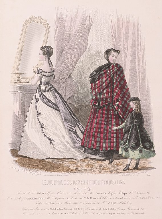 Achille Deveria introduced David to the Journal des demoiselles and the Journal des jeunes personnes, for which he produced lithographs from 1839 to 1842. David’s albums were often published as a supplement to women’s magazines. He drew all the plates for the Le Moniteur de la Mode for fifty years. He was a pioneer in introducing contemporary backgrounds in his plates.