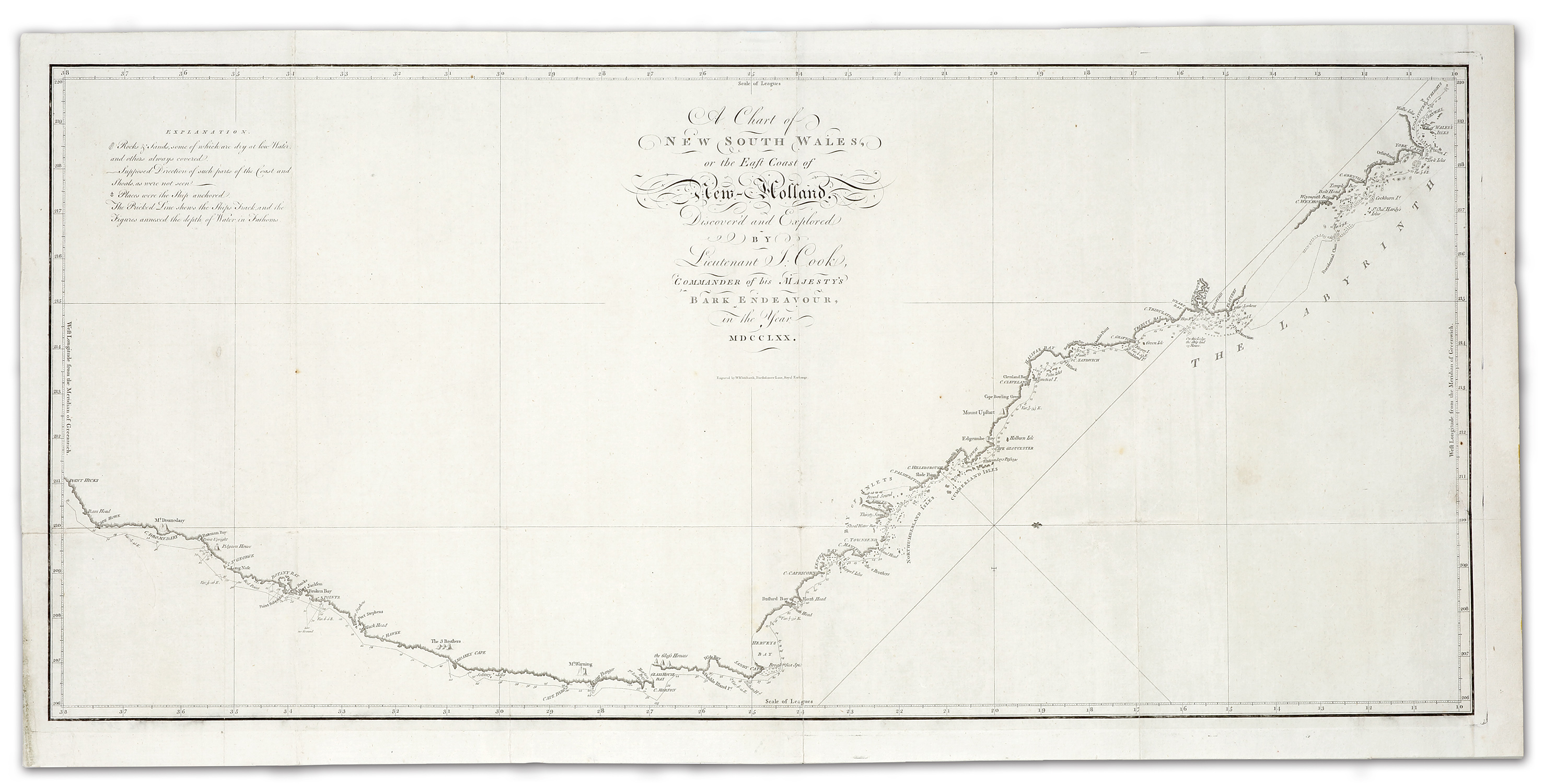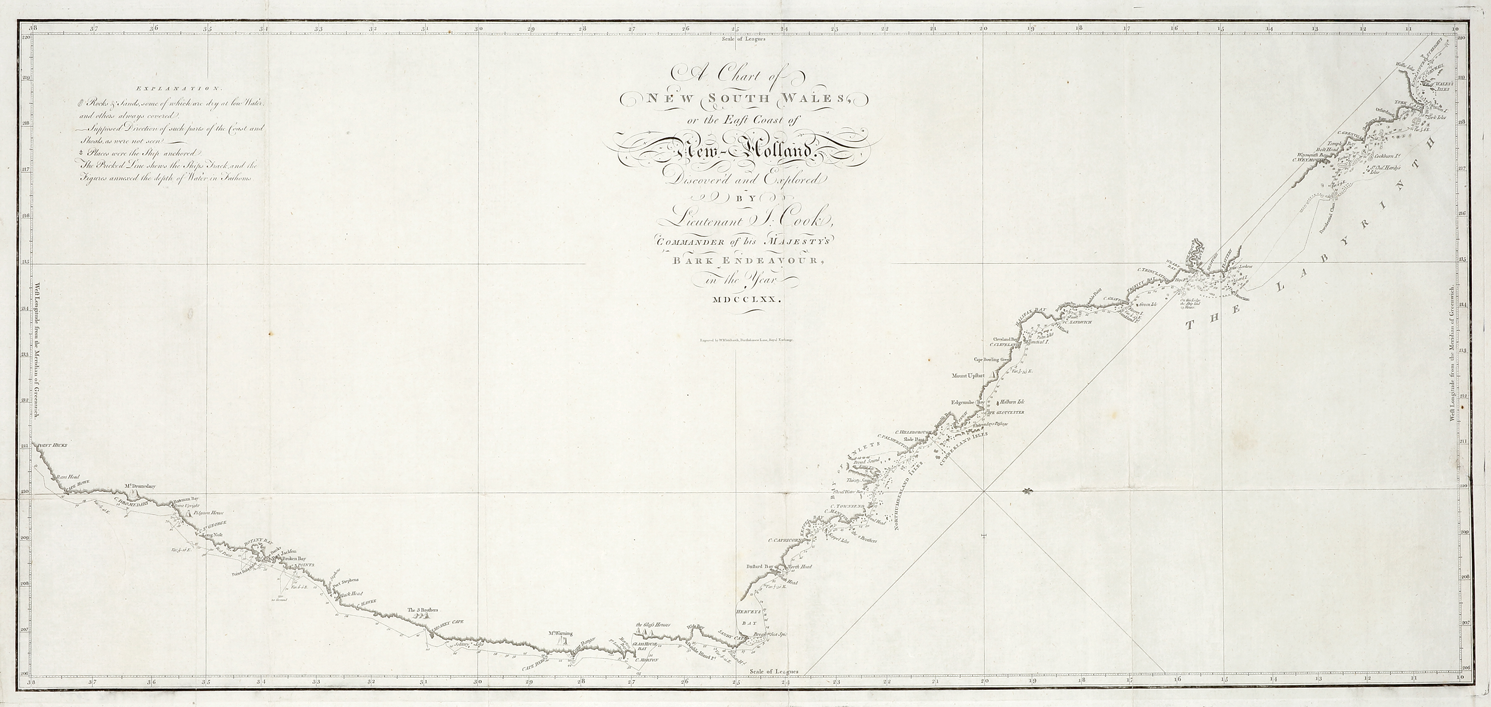 A Chart of New South Wales, or the East Coast of New-Holland. Discovere’ and Explored by Lieutenant J.Cook, Commander of his Majesty’s Bark Endeavour, in the year MDCCLXX.