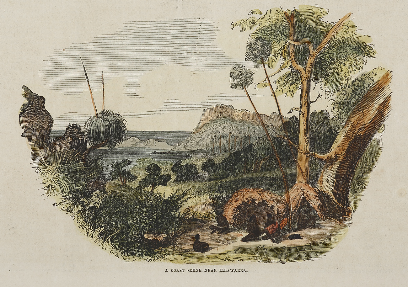 Rare colonial engraving of Illawarra in 1855 by George French Angas.