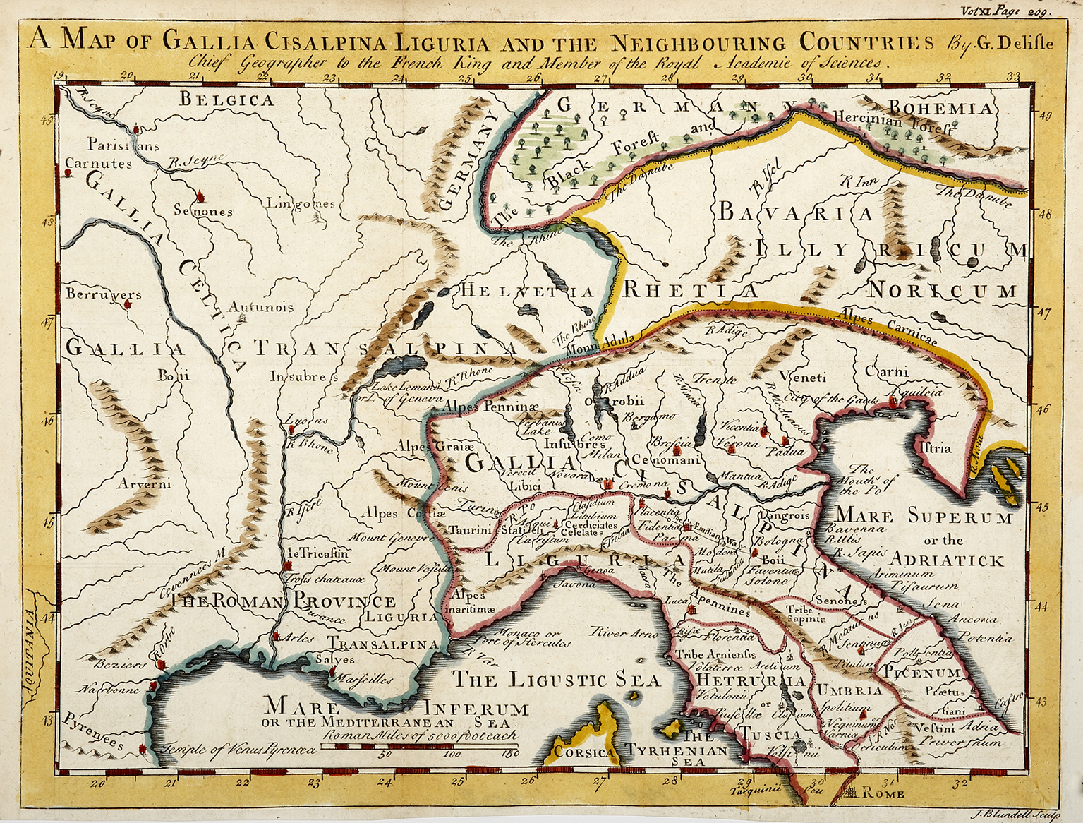 Scarce c.18th map of northern Italy.