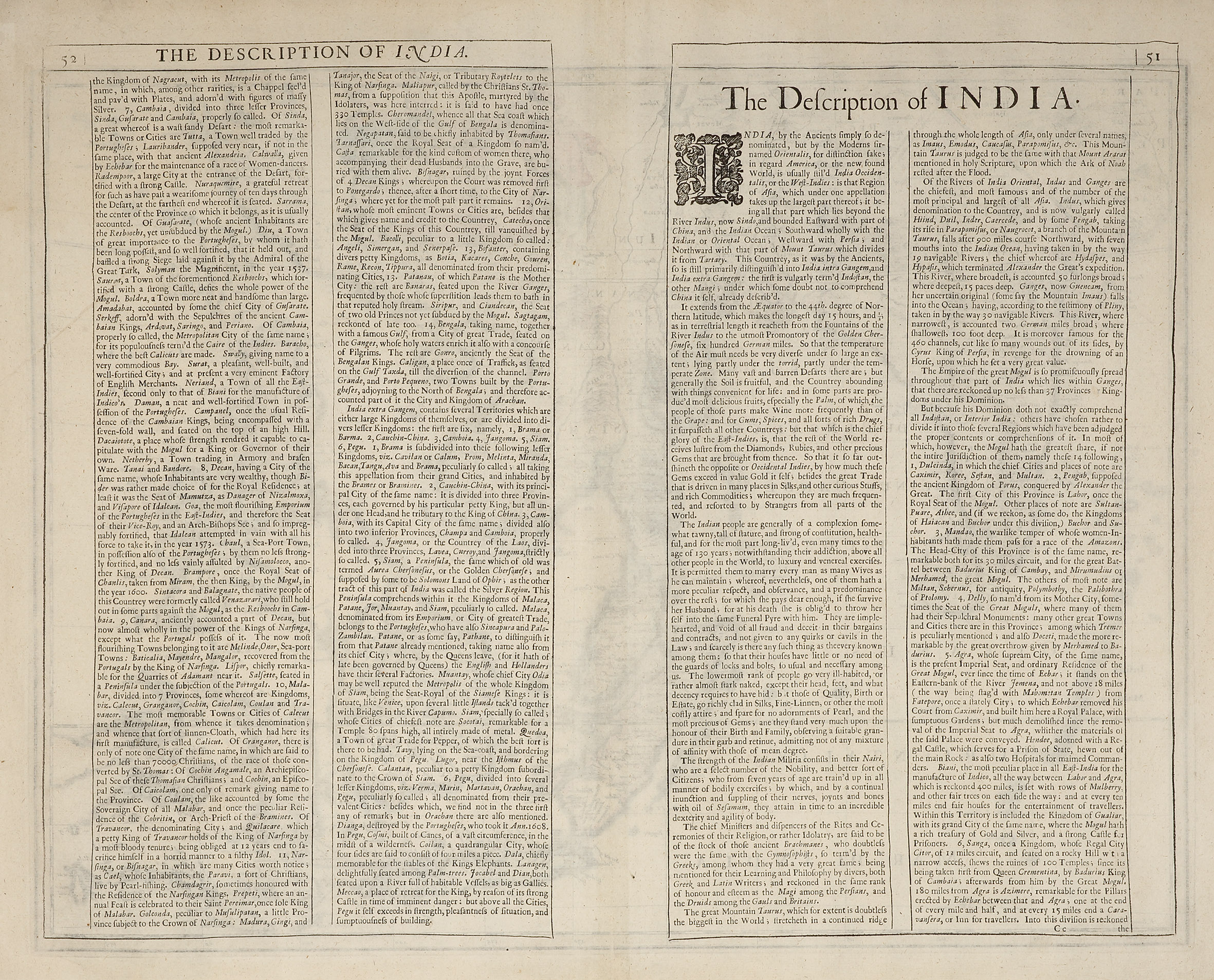 English text on verso with page numbers 51 & 52.