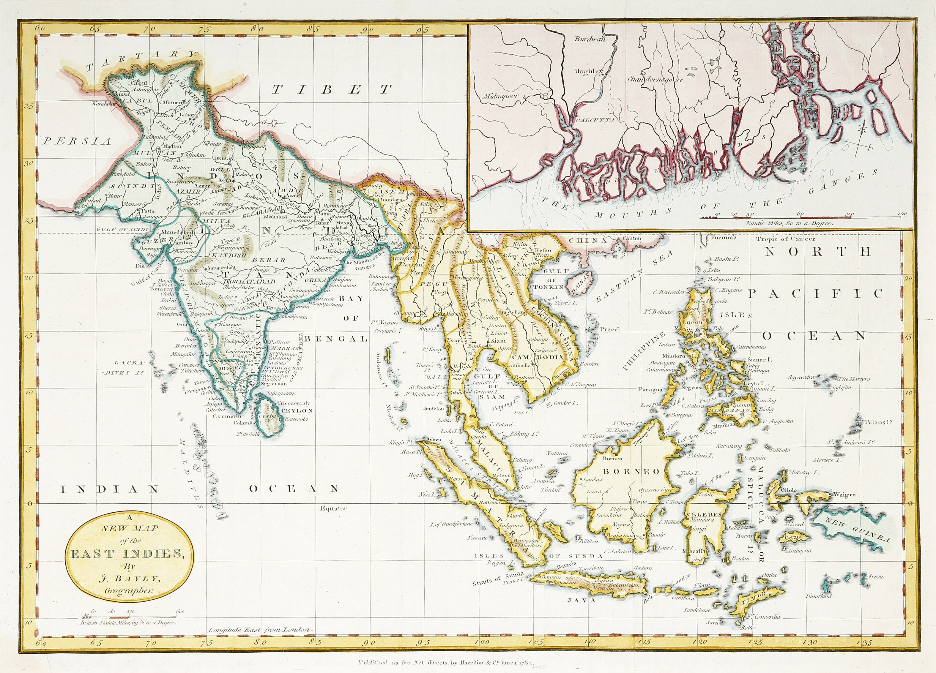 Scarce detailed map of Asia extending from India to New Guinea, with an inset of ‘The Mouth of the Ganges’.
