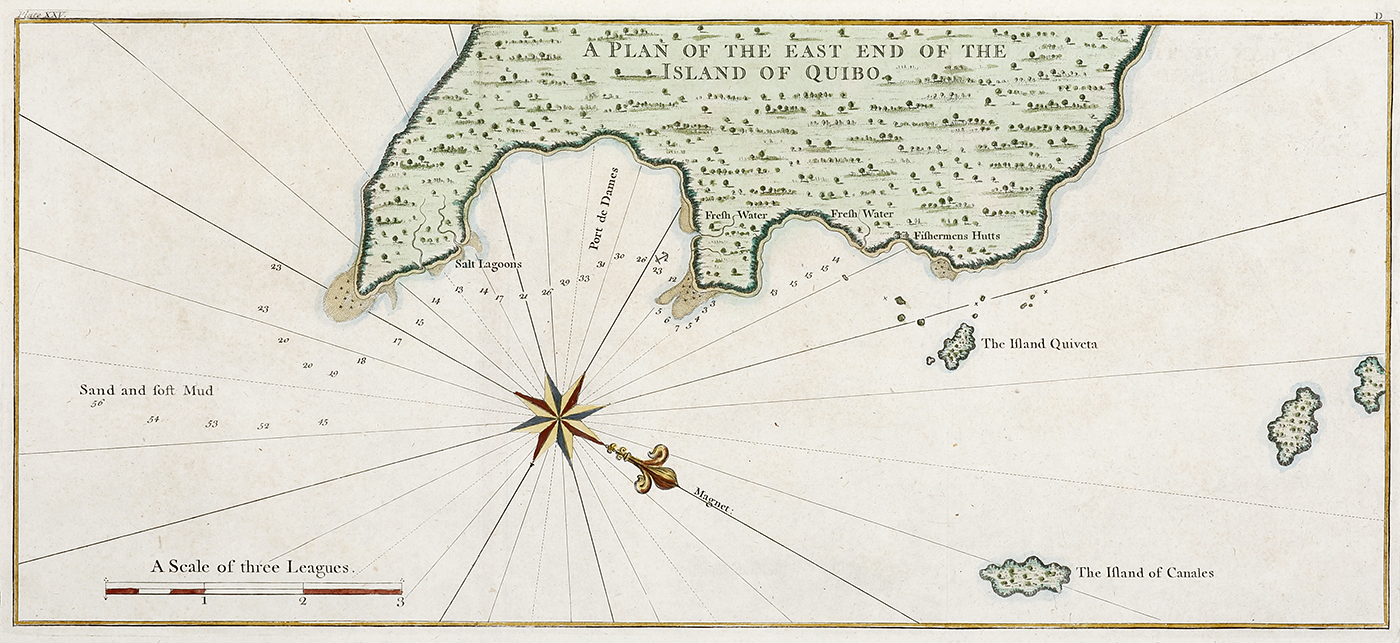 Scarce engraved map of Coiba Island, Panama, from the English edition of Lord Anson’s famous circumnavigation of the world.