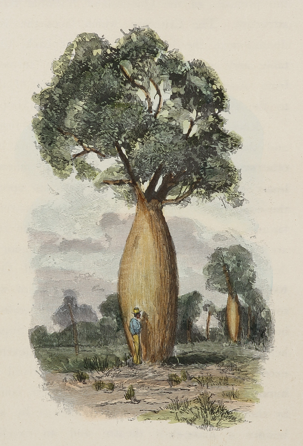 Scarce c.19th hand coloured engraving of a Baobab or bottle-tree which is endemic to central Queensland and the northern New South Wales regions.