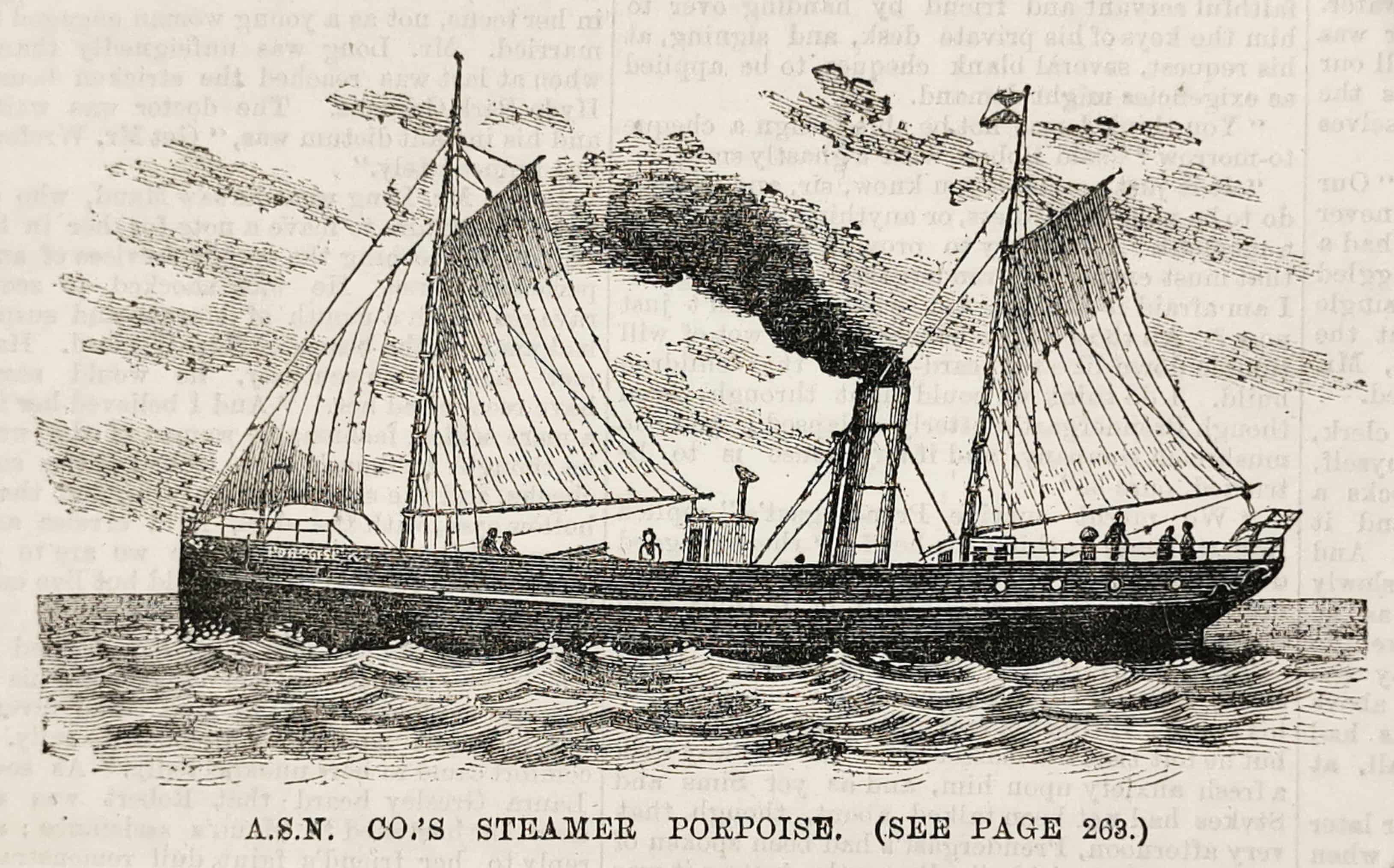 Rare engraving of the 62 tonne steamer, Porpoise, which plied the New South Wales and Queensland coasts. From the original edition of the Town & Country Journal.