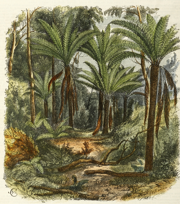Rare engraving of Fern trees from a painting by Nicholas Chevalier. From the original edition of the Illustrated Sydney News.
