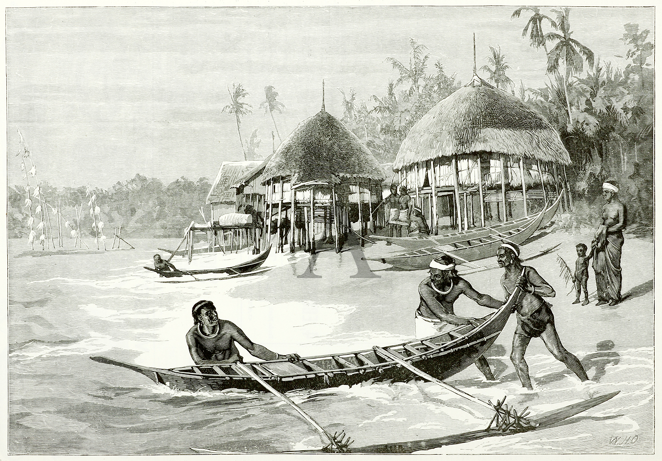 Engraving of a scene on the Nicobar Islands. From the original edition of The Illustrated London News.