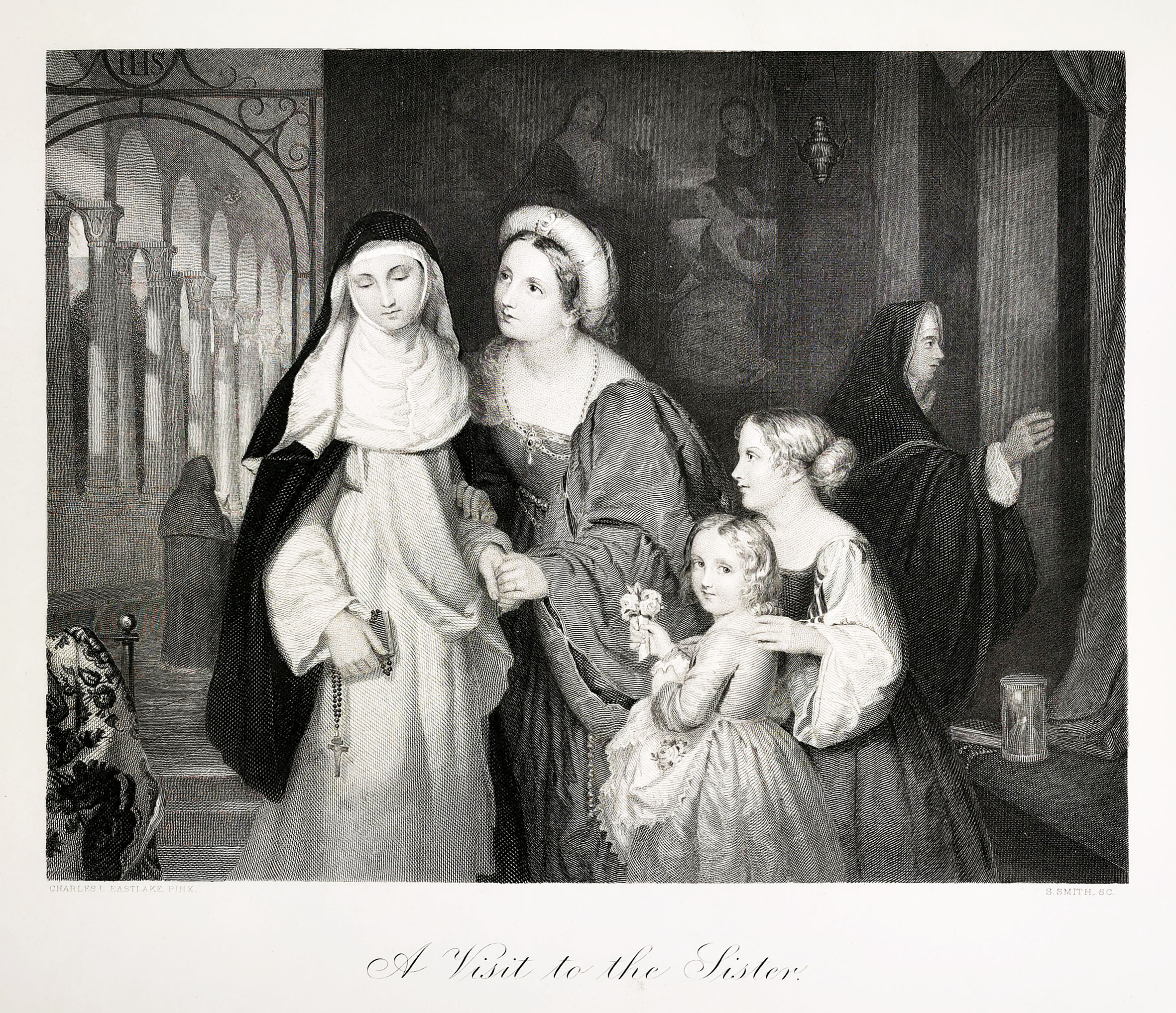 Engraving of nuns in a convent.