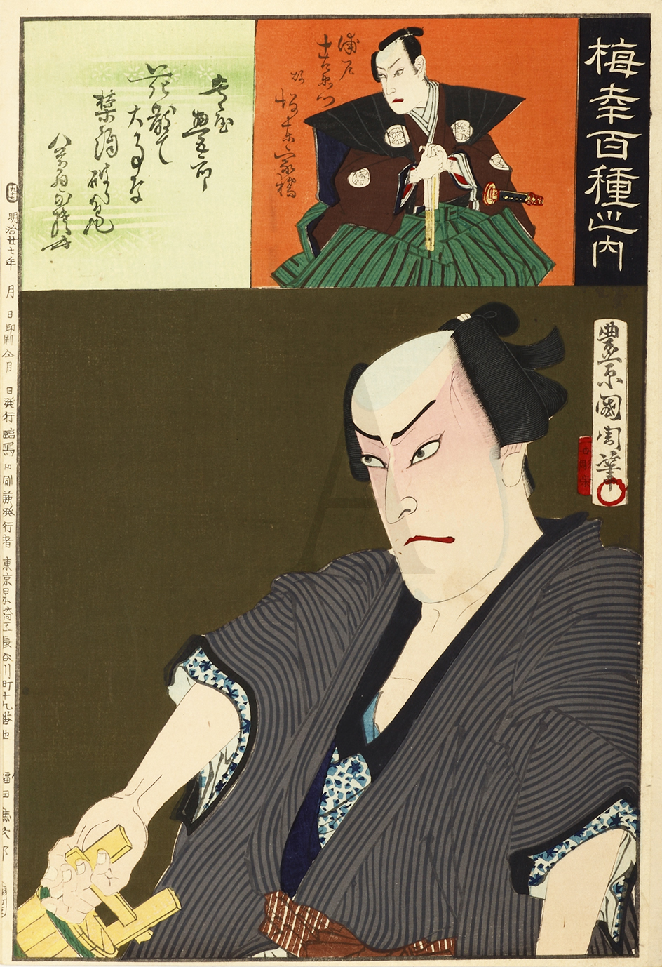 Woodblock by Toyohara Kunichika of teh actor Bando Kakitsu, from the series ‘A Hundred Kabuki Actors‘