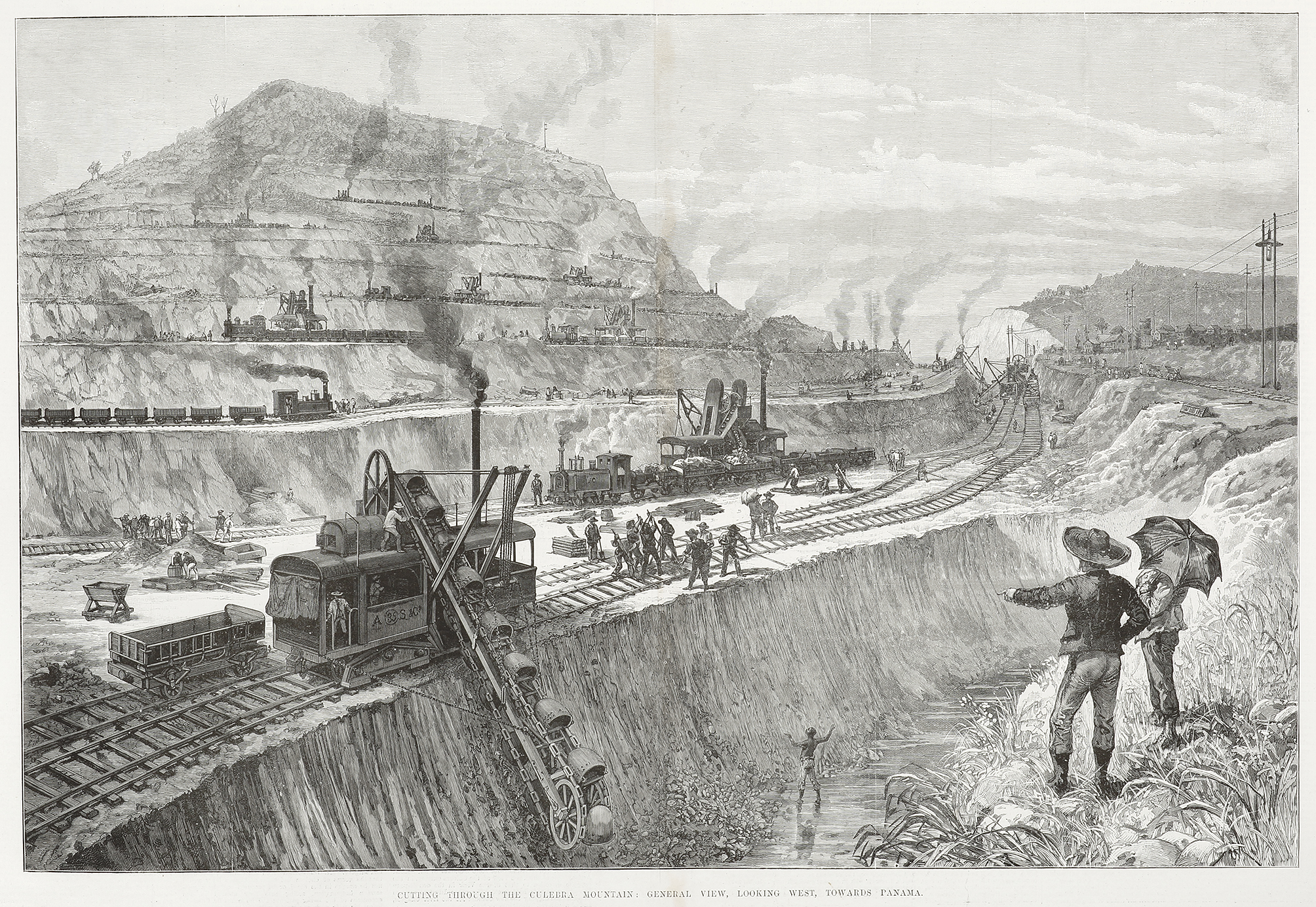 Large engraving showing the building of the Panama Canal. From the original edition of The Graphic.