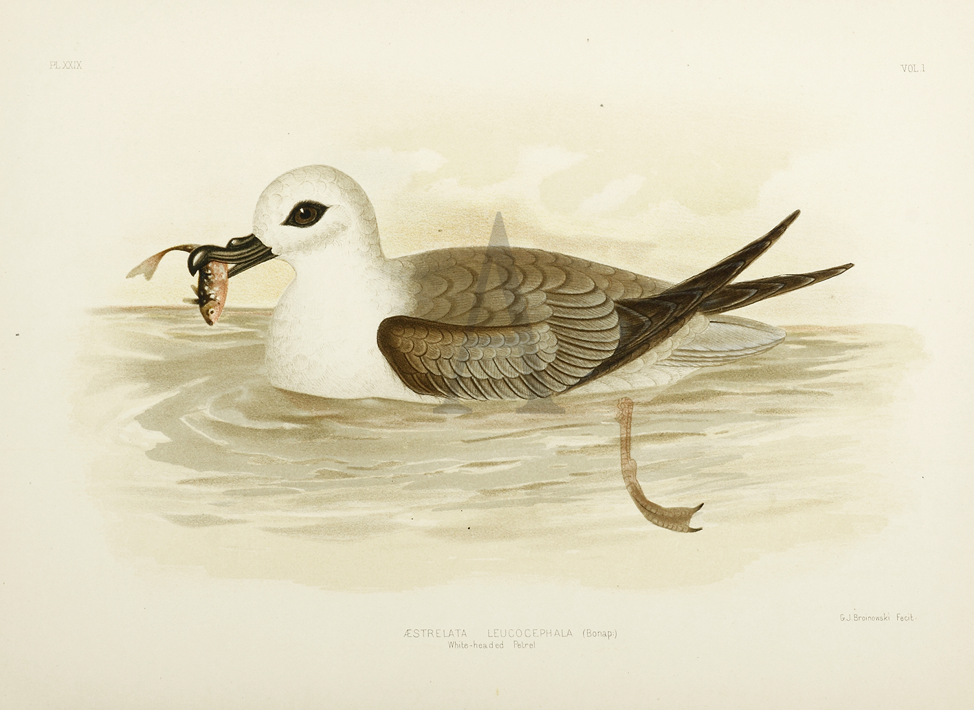 Colour lithograph of the White headed Petrel, from Broinowski’s, Birds of Australia, one of the three most important C19th studies of Australian ornithology.