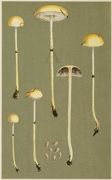 Agaricus (Stropharia) Semi-Globatus - Antique Print from 1882