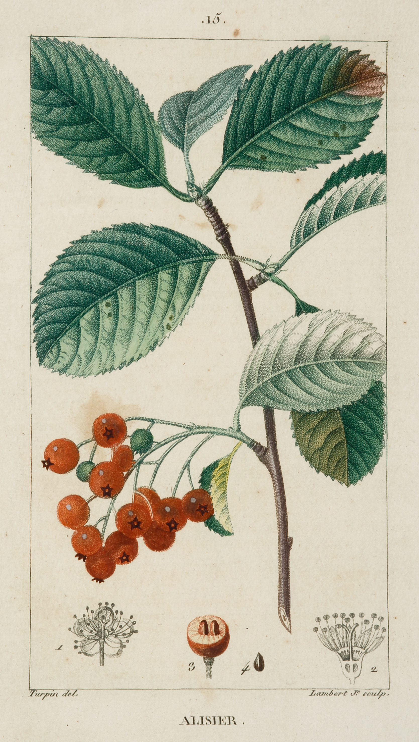 Very fine stipple engraving of a clipping from a Wild Service tree from one of the most important French medicinal herbals of the 19th century. Rare.