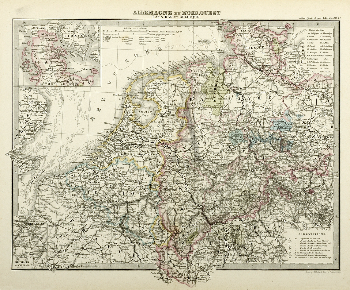 Nineteenth century map showing the north-west area of Germany, Belgium and the Netherlands.
