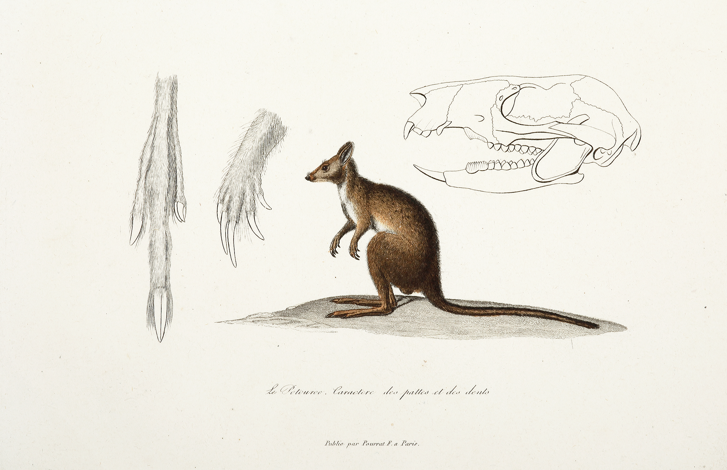 Le Potouroo. Caractere des pattes et des dents. - Antique Print from 1838