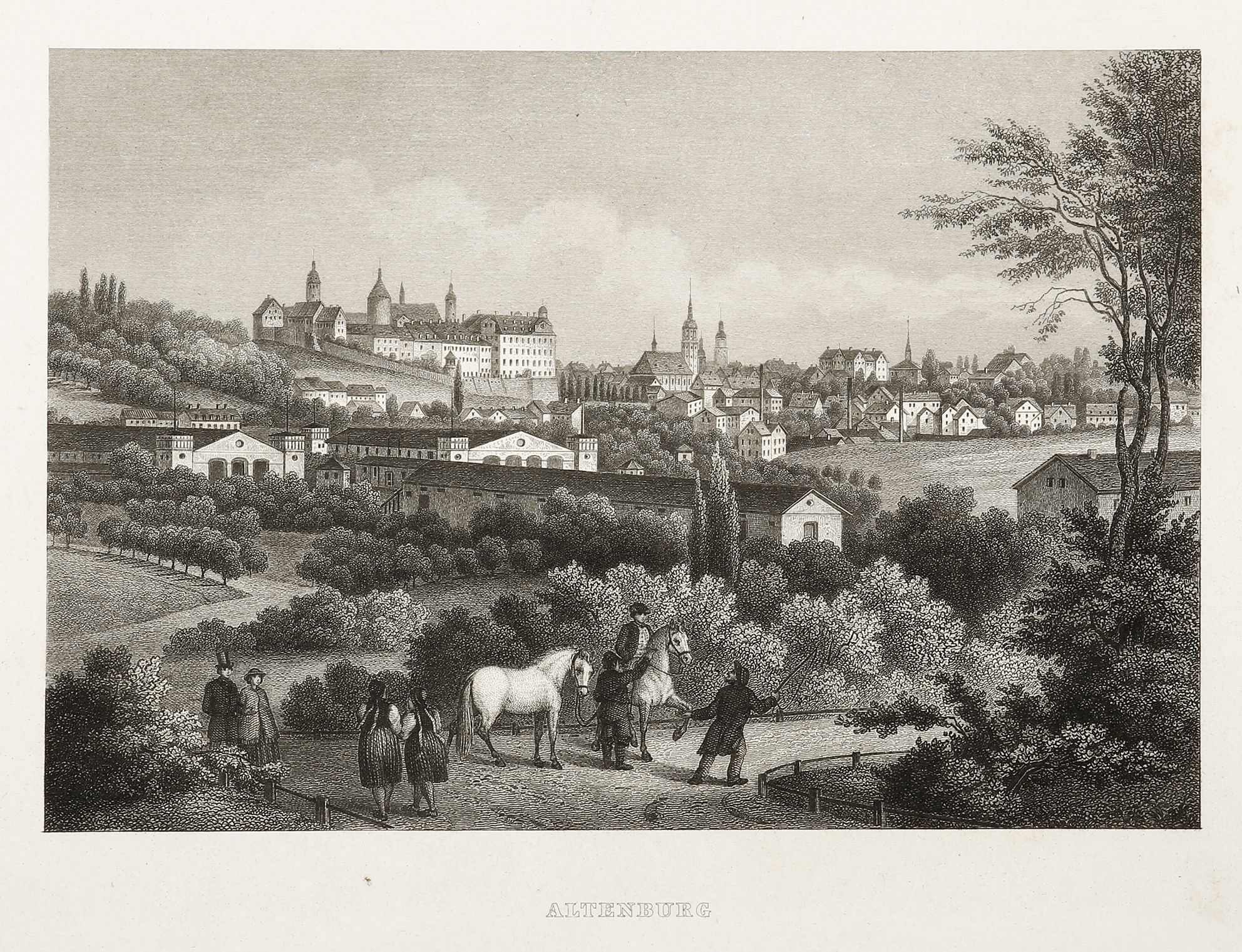 Early engraving of the township of Altenburg, Germany.