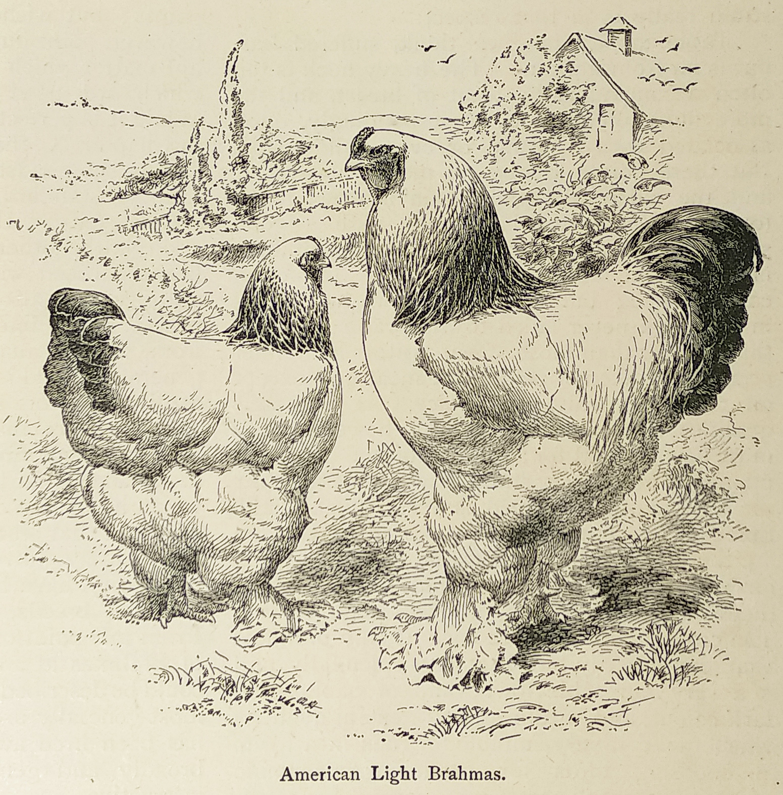 American Light Brahmas. - Antique Print from 1882