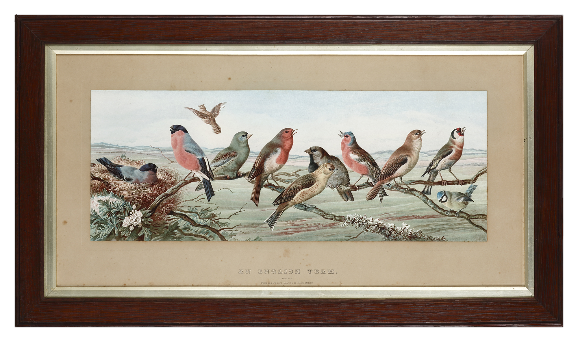 Pair of famous cricketing lithographs depicting Australian and English birds in their original period oak frames and printed card mounts. They were published in 1893 to commemorate England winning their 5th consecutive home series and regaining the Ashes, having lost … Read Full Description