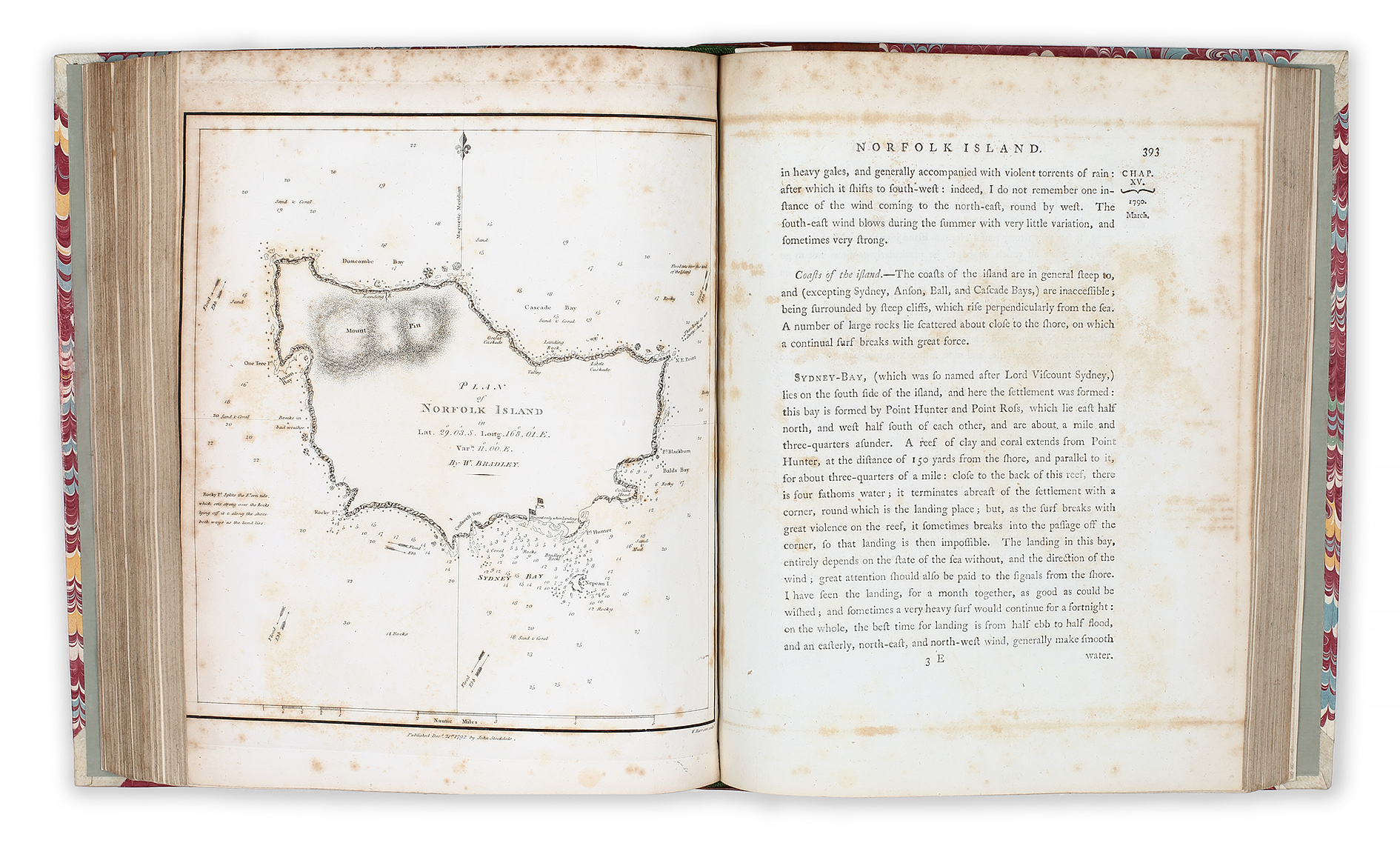 Important c.18th account of Sydney Cove and Norfolk Island based on the Journals of Governors Phillip and King, Lieutenant Ball and the Voyages from the first sailing of the Sirius in 1787, to the Return of that Ship’s Company to England in 1792, published January 1, 1793.