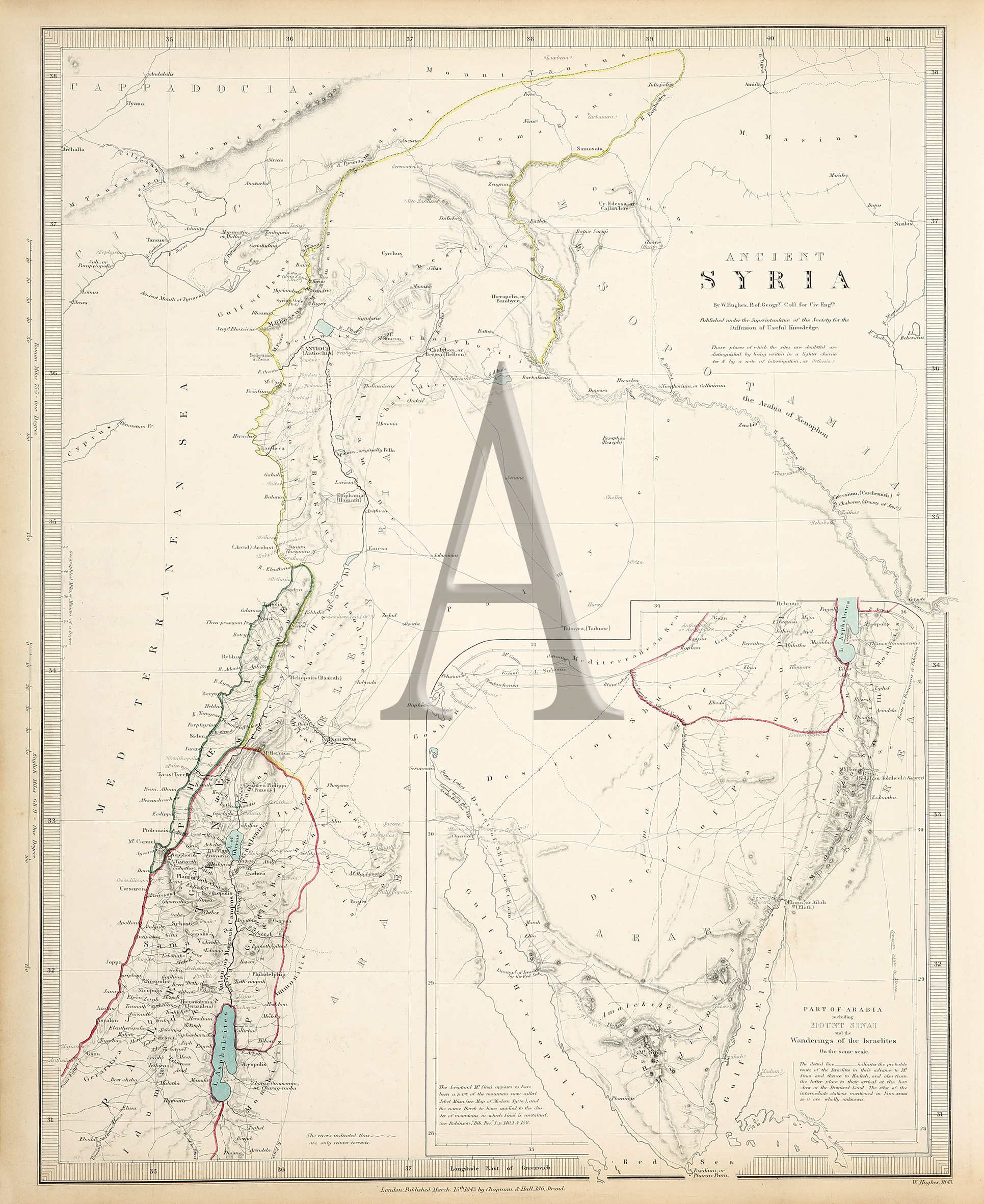Very detailed map of ancient Syria, with inset of part of Arabia with Mount Sinai, published by the Society for the Diffusion of Useful Knowledge.