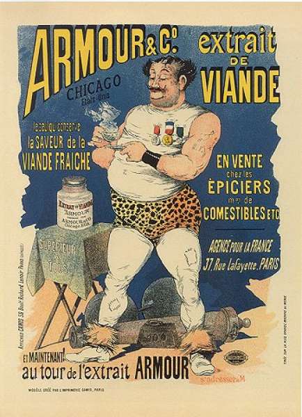 &quotParis sheltered hundreds of painters at this period. A great many of them brought what talent they had to the great adventure of the poster, for which demand continued to grow as it became the vogue. (including) Albert Guillaume, caricaturist, who was one of the most prolific artists for beverages and various products for whom he made use of a whole gallery of figures&#8230the carnival athlete (Bouillon Armour).&quot(Weill p.47) A. Guillaume