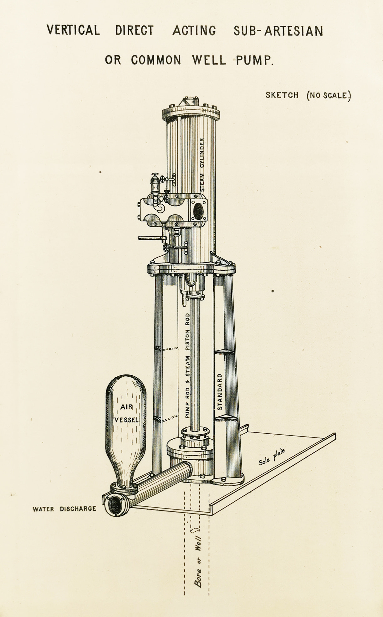 Scarce colonial lithograph of a pump for an artesian water bore in Queensland.