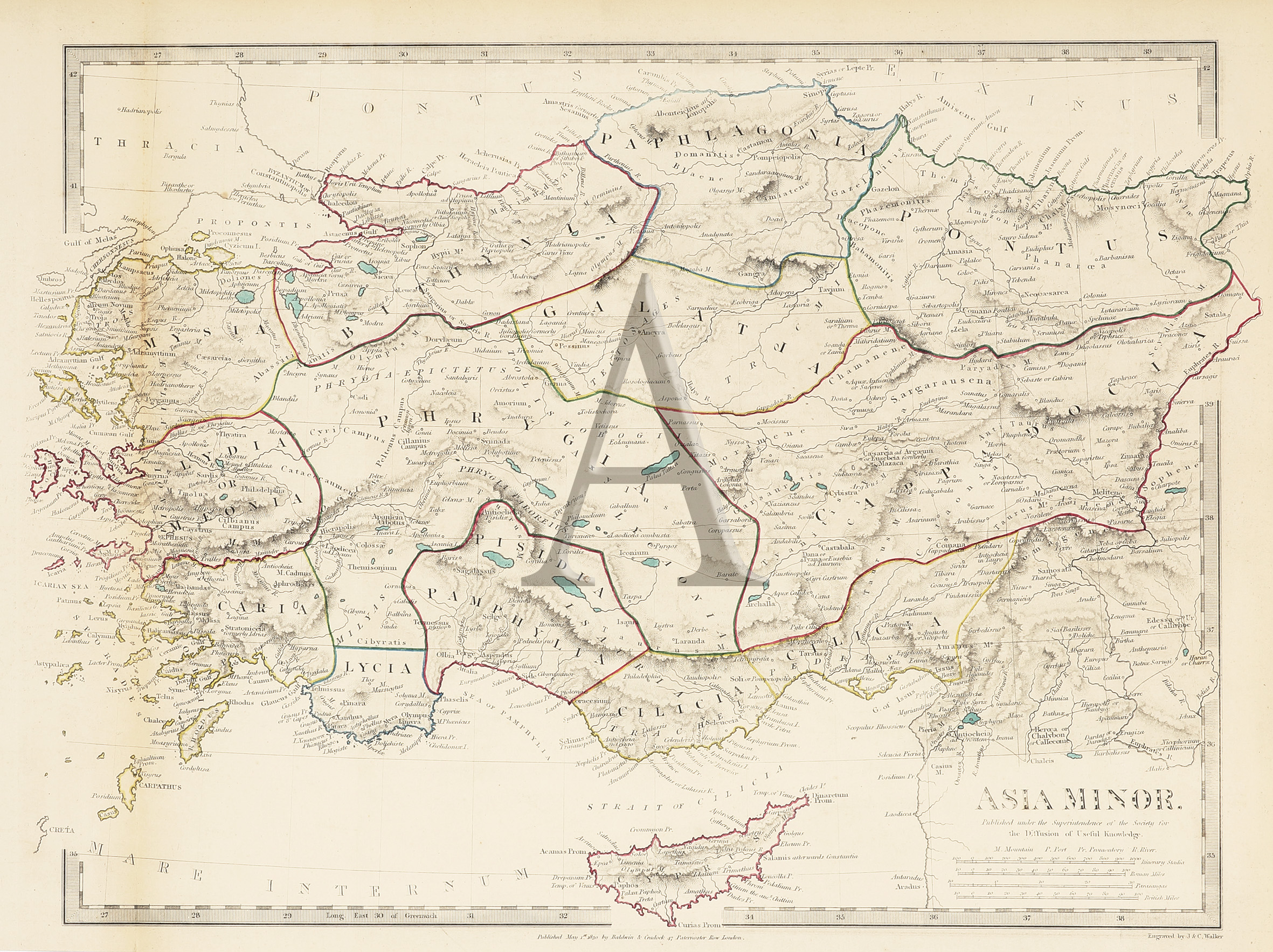 Finely engraved map of Asia and with extensive detail. Key of populations top left, published by the Society for the Diffusion of Useful Knowledge.