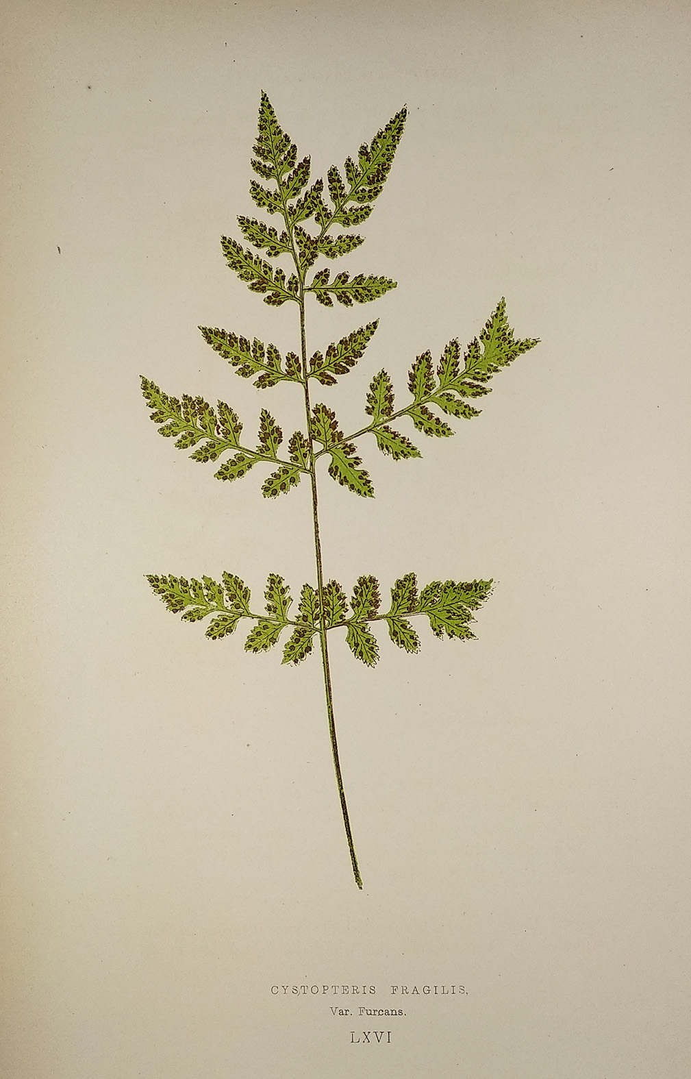 Fine botanical engraving of a fern by Edward Joseph Lowe. Lowe was a botanist and meteorologist whose private income allowed him to pursue his passionate interest in ferns at a time when there was also widespread public interest in the … Read Full Description