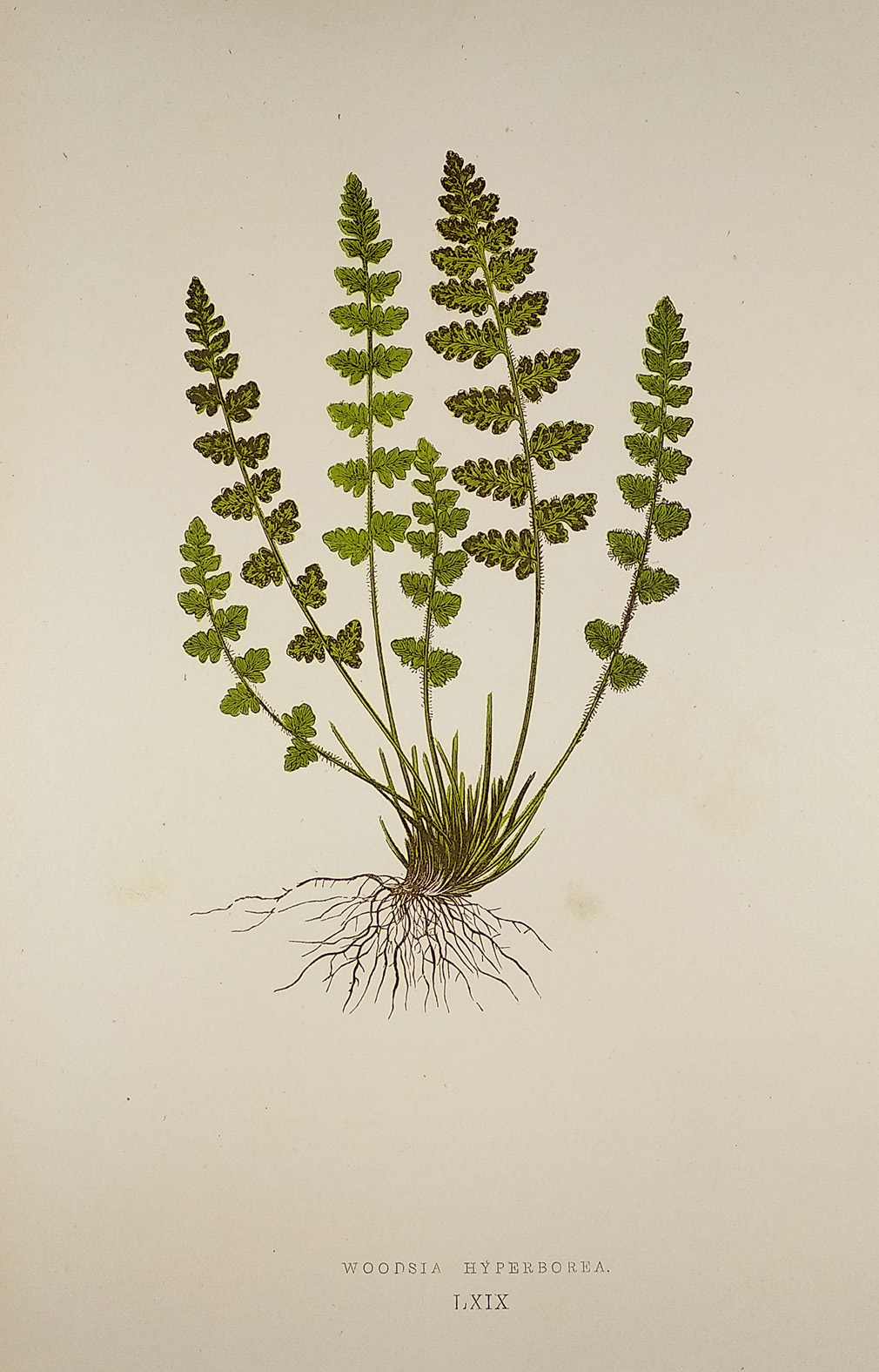 Fine botanical engraving of a fern by Edward Joseph Lowe. Lowe was a botanist and meteorologist whose private income allowed him to pursue his passionate interest in ferns at a time when there was also widespread public interest in the … Read Full Description