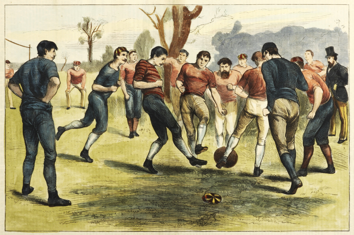 "Association" Football: "Dribbling." - Antique Print from 1875