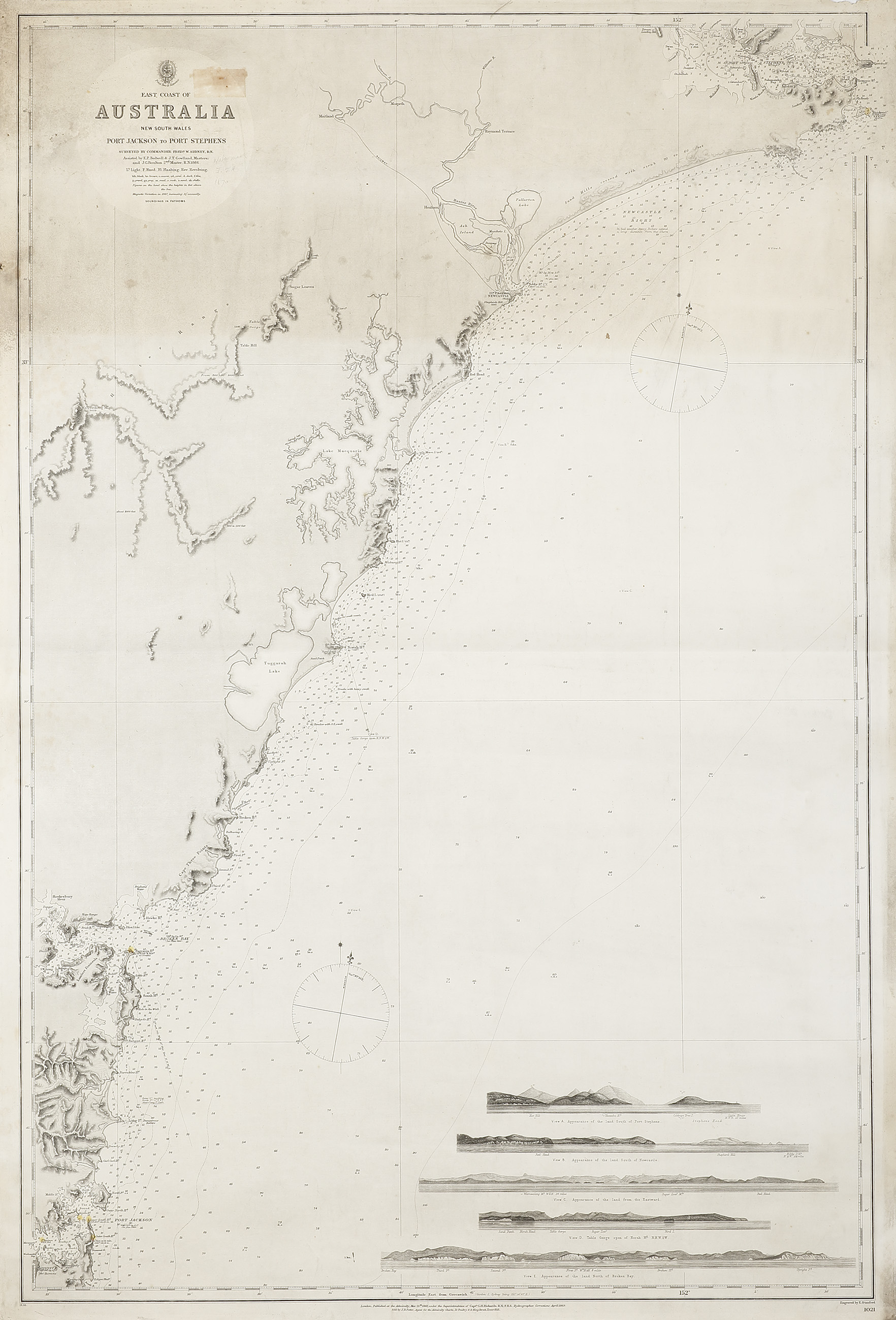 Naval policy dictated that Admiralty charts be destroyed when superseded to avoid navigational error. It was during Rear Admiral John Washington’s period as the Admiralty’s hydrographer, 1855-1863, that a series of agreements were drawn up with the Australian colonies. These agreements provided boats and crews for use by officers lent from the Royal Navy to chart the coasts and shoal waters in the approaches to the rapidly developing towns, communication with which was seriously hampered by the the frequency of shipwrecks. It had been the discovery of gold and the consequent rush of miners and emigrants from not only England but California that added greatly the numbers of ships sailing to Australia’s east coast. This led to numerous petitions being made to Her Majesty’s Government to chart the eastern approaches to Australia to make for safer passage for shipping.