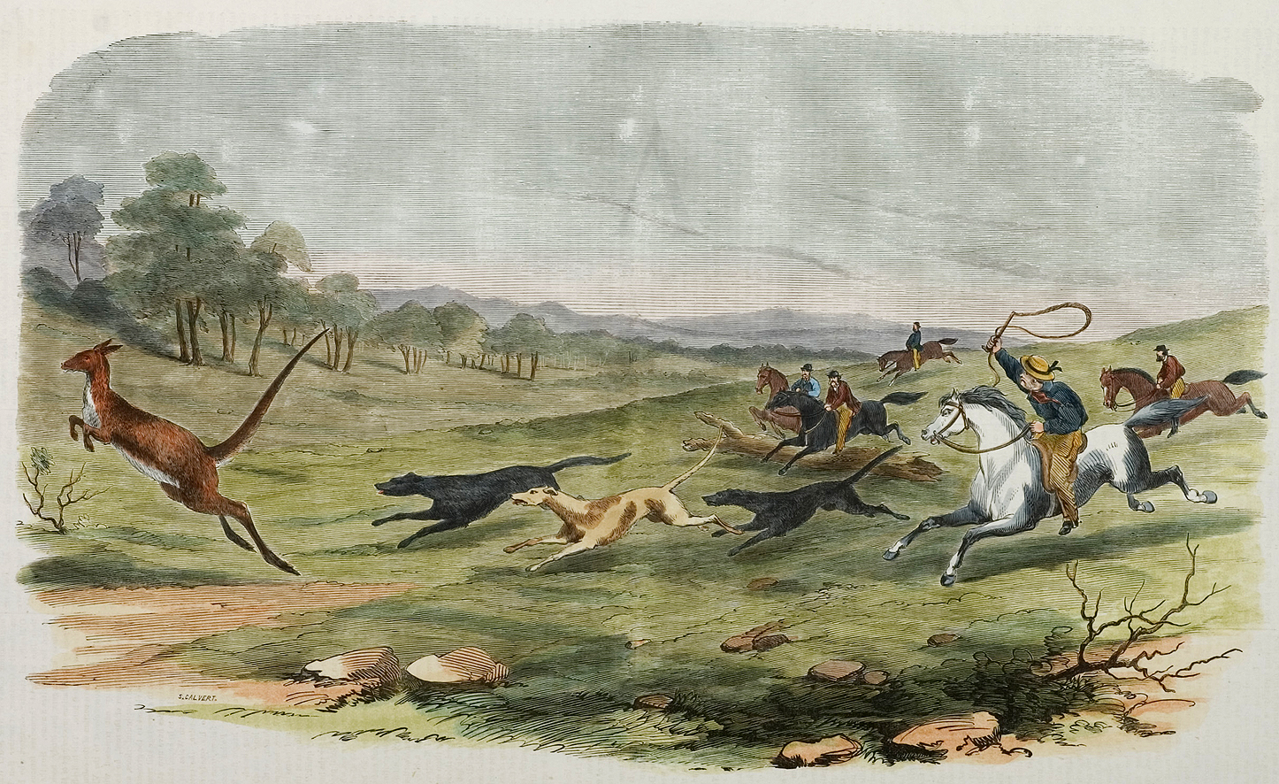 Samuel Calvert (1828-1913) English painter and engraver who moved to Adelaide after his older brothers John and William migrated to South Australia in 1843. By 1850 Calvert had set up on his own account in King William Street then then moved to Melbourne as an engraver in 1853. He was a prolific and left a large body of work.