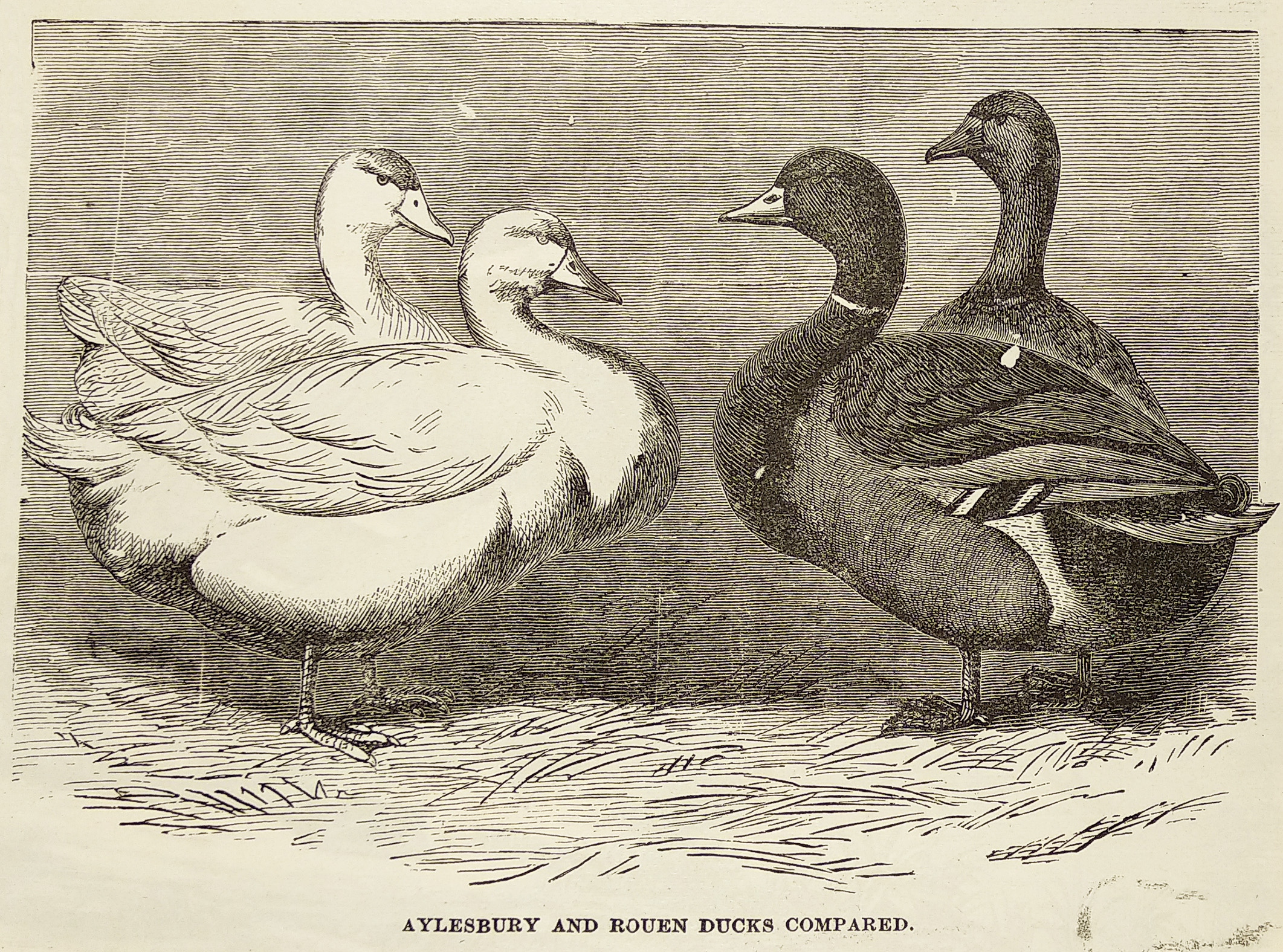 Aylesbury and rouen ducks compared.