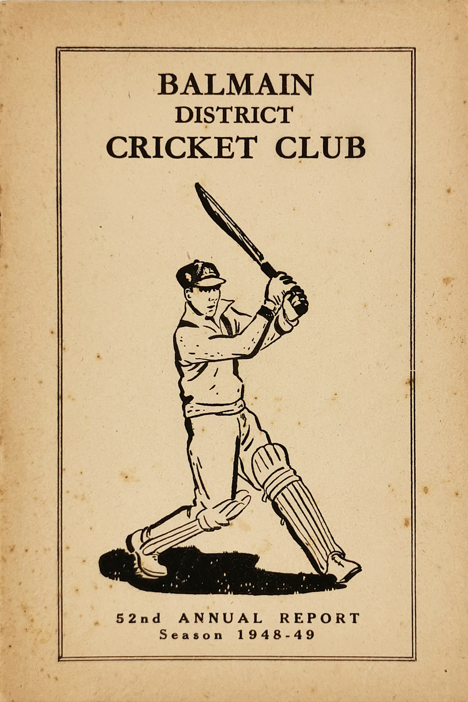 Rare Balmain Cricket Club annual report for 1948-49. Small octavo, 40pp., pictorial cover, printed Sydney.