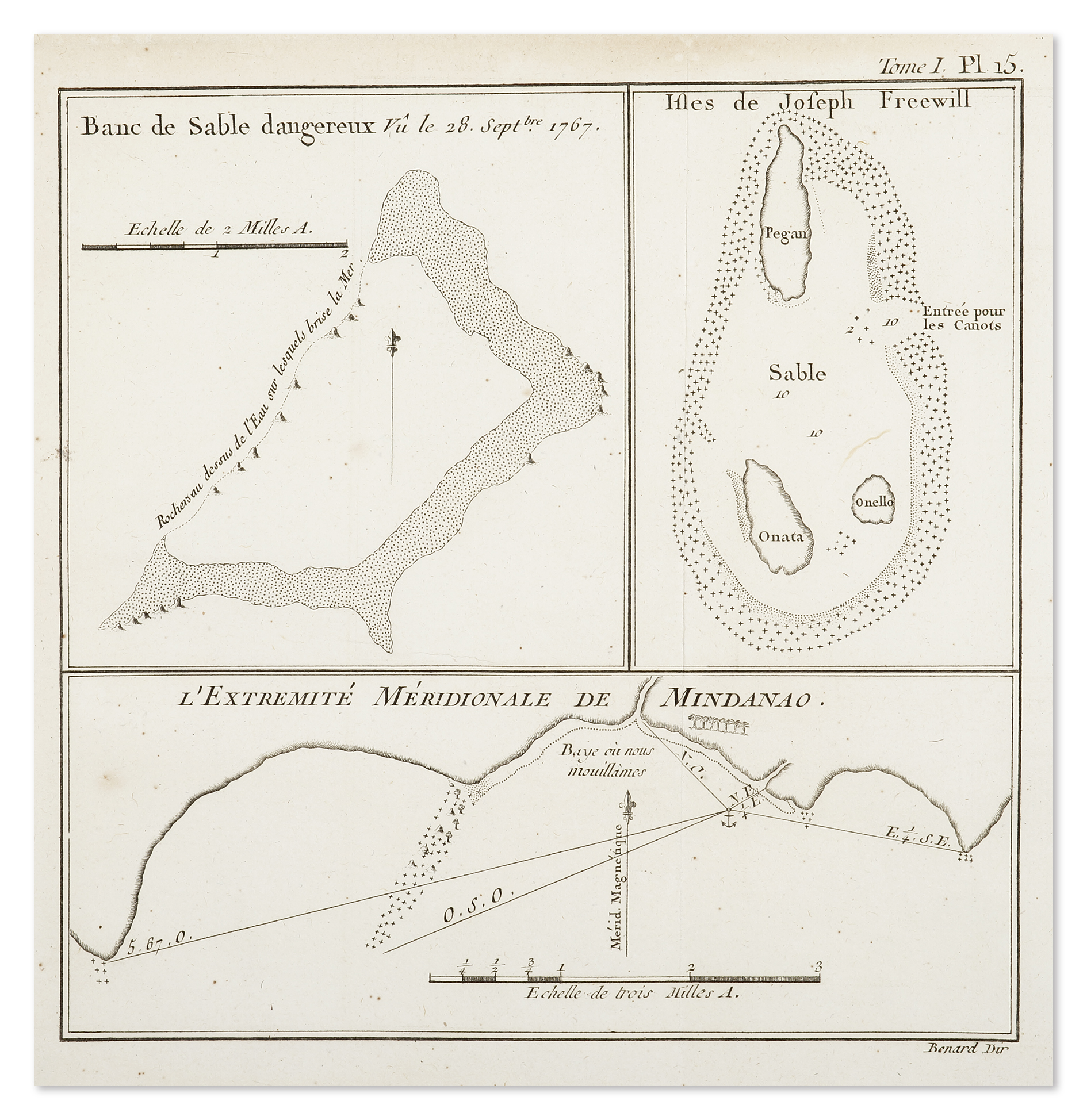 Scarce late c.18th engraved French edition of Phillip Carteret’s map of the southern part of Mindanao, Philippines, extending to the Freewill Islands (Mapia Atoll), now part of Indonesia.