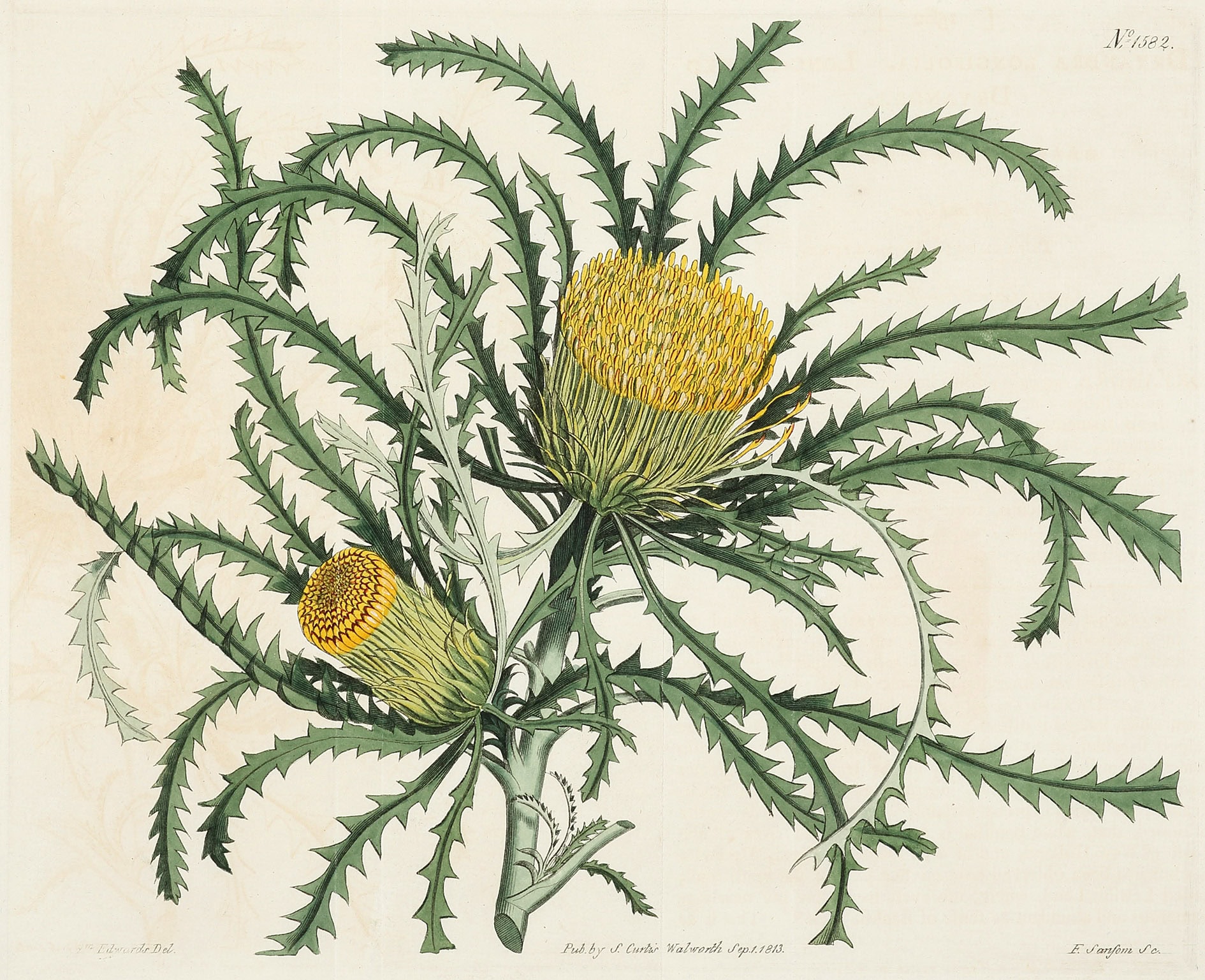 Rare early c.19th hand coloured engraving of Banksia longifolia. Modern binomial name: Banksia prolata (syn. Dryandra longifolia) First described: Brown, R. 1810 Distribution: WA south west This species was first formally described in 1810 by Robert Brown who gave it … Read Full Description