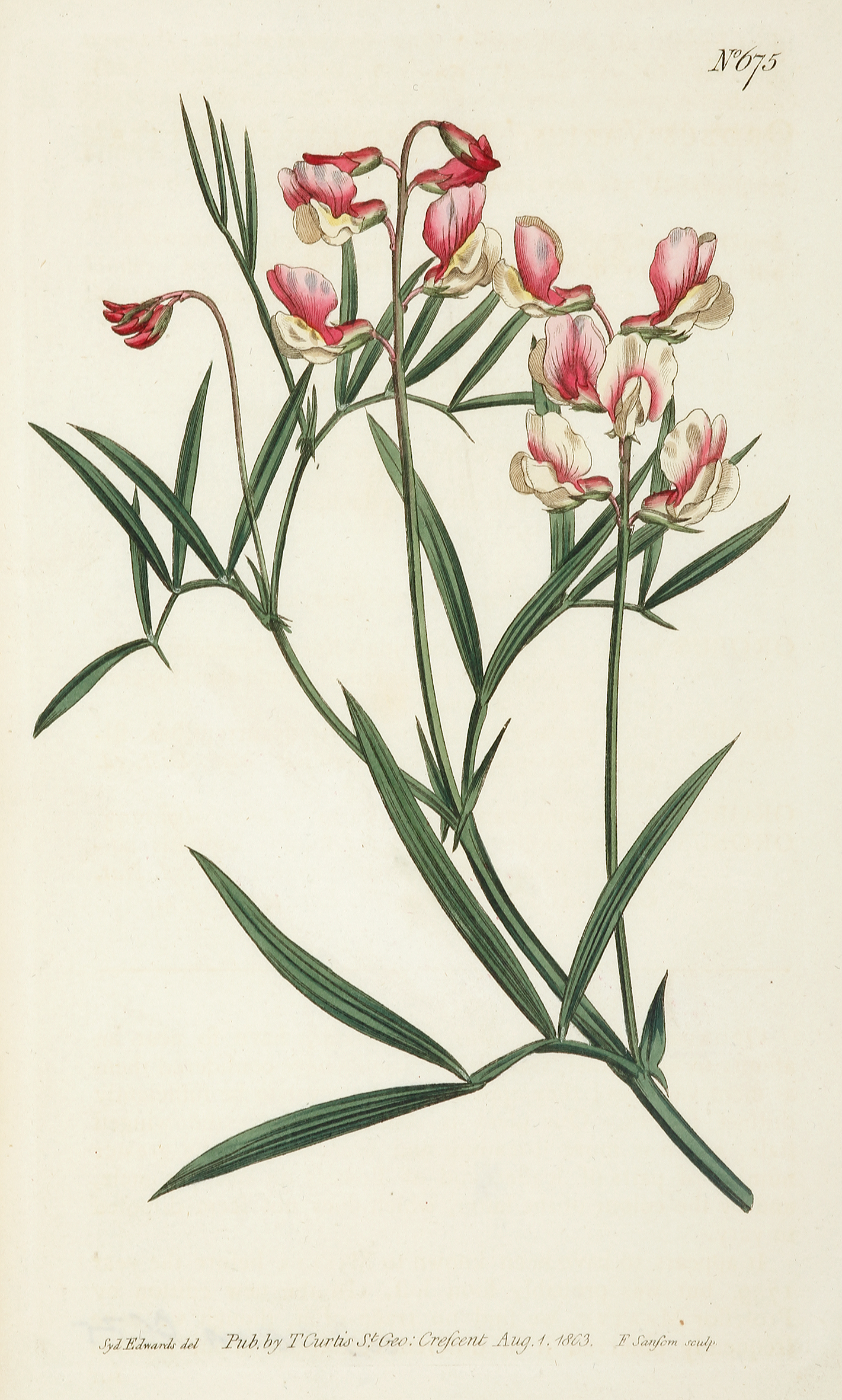 Fine original hand coloured botanical illustration of Bitter vetch. Modern binomial name: Orobus Varius. Particoloured Bitter -Vetch From Curtis’s Botanical Magazine: or, Flower-Garden Displayed..